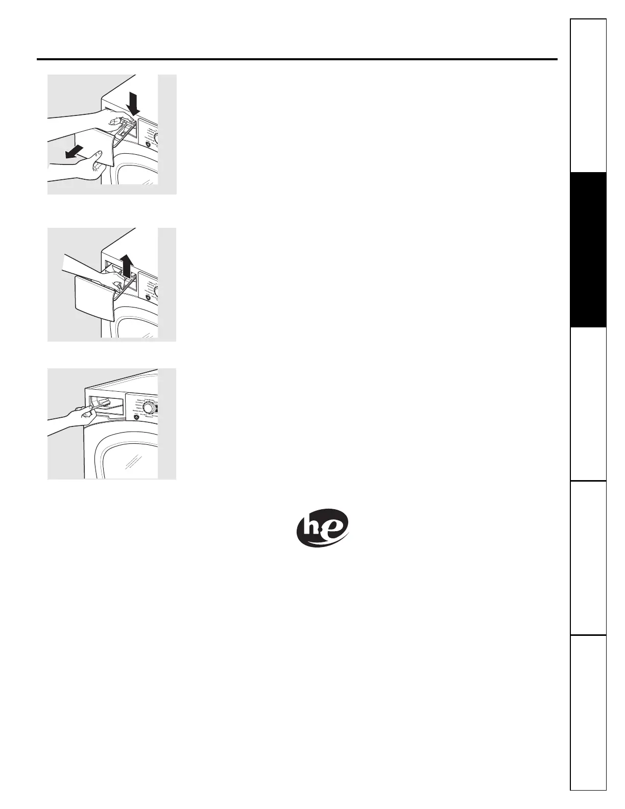■ Enlevez les etiquettes des compartiments d’eau de Javel et d’adoucissant et