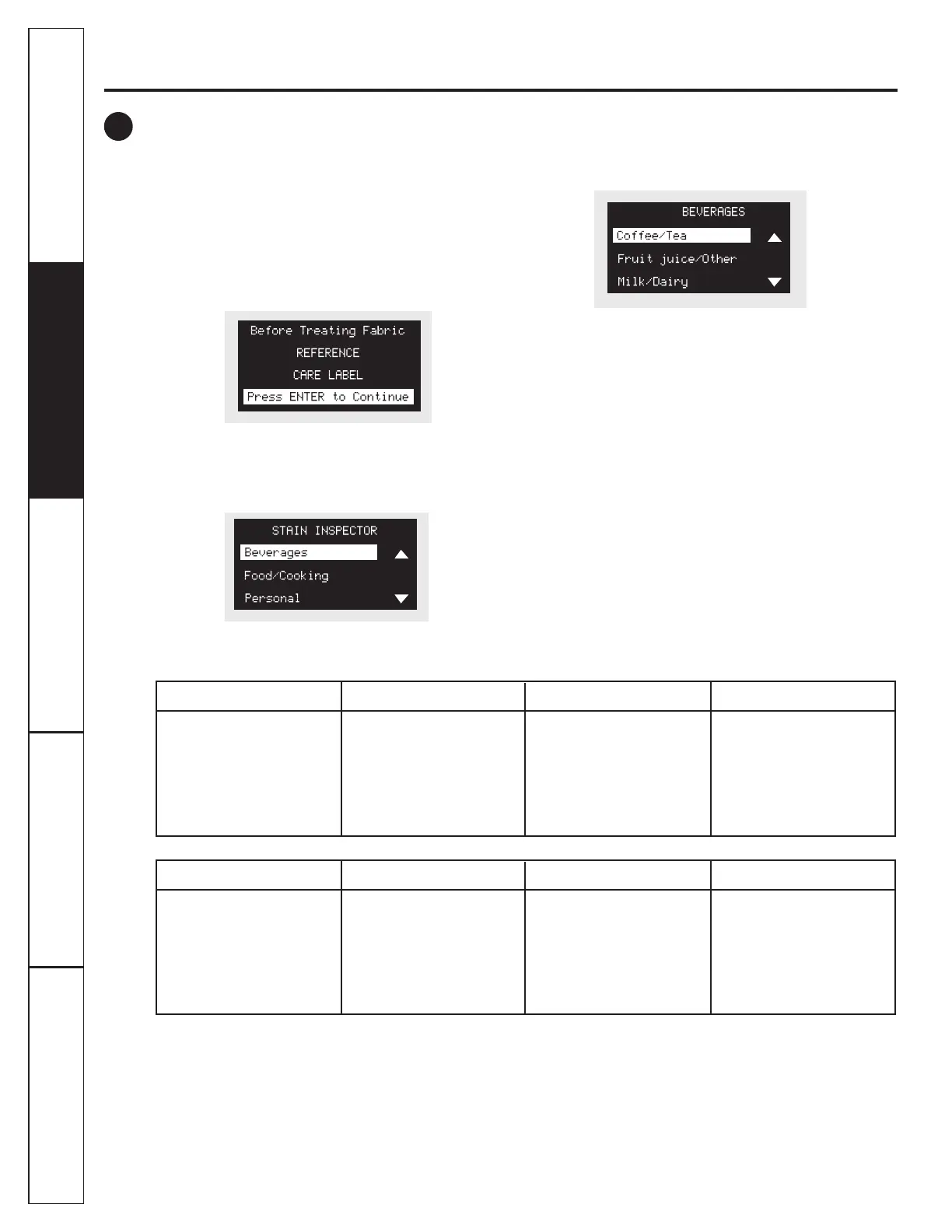 NOTE: To turn off STAIN INSPECTOR or to select a