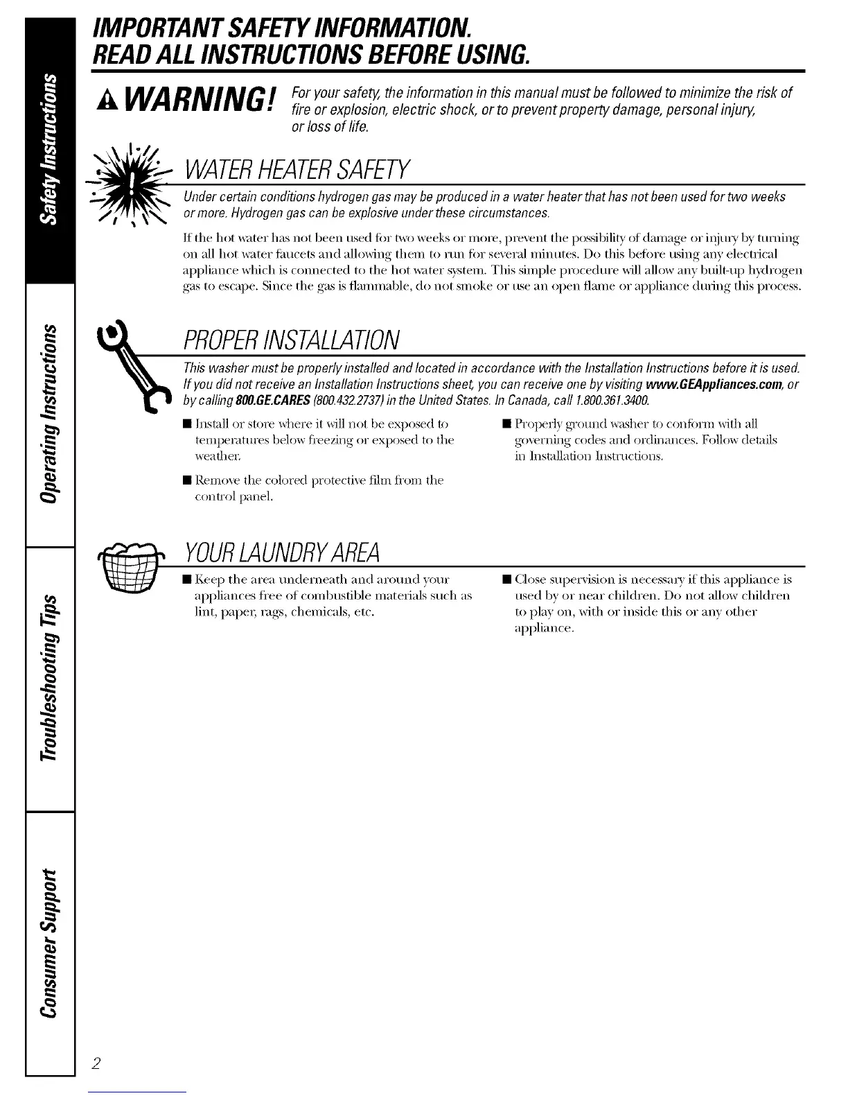 This washer must be properly installed and located in accordance with the Installation Instructions before it is used.