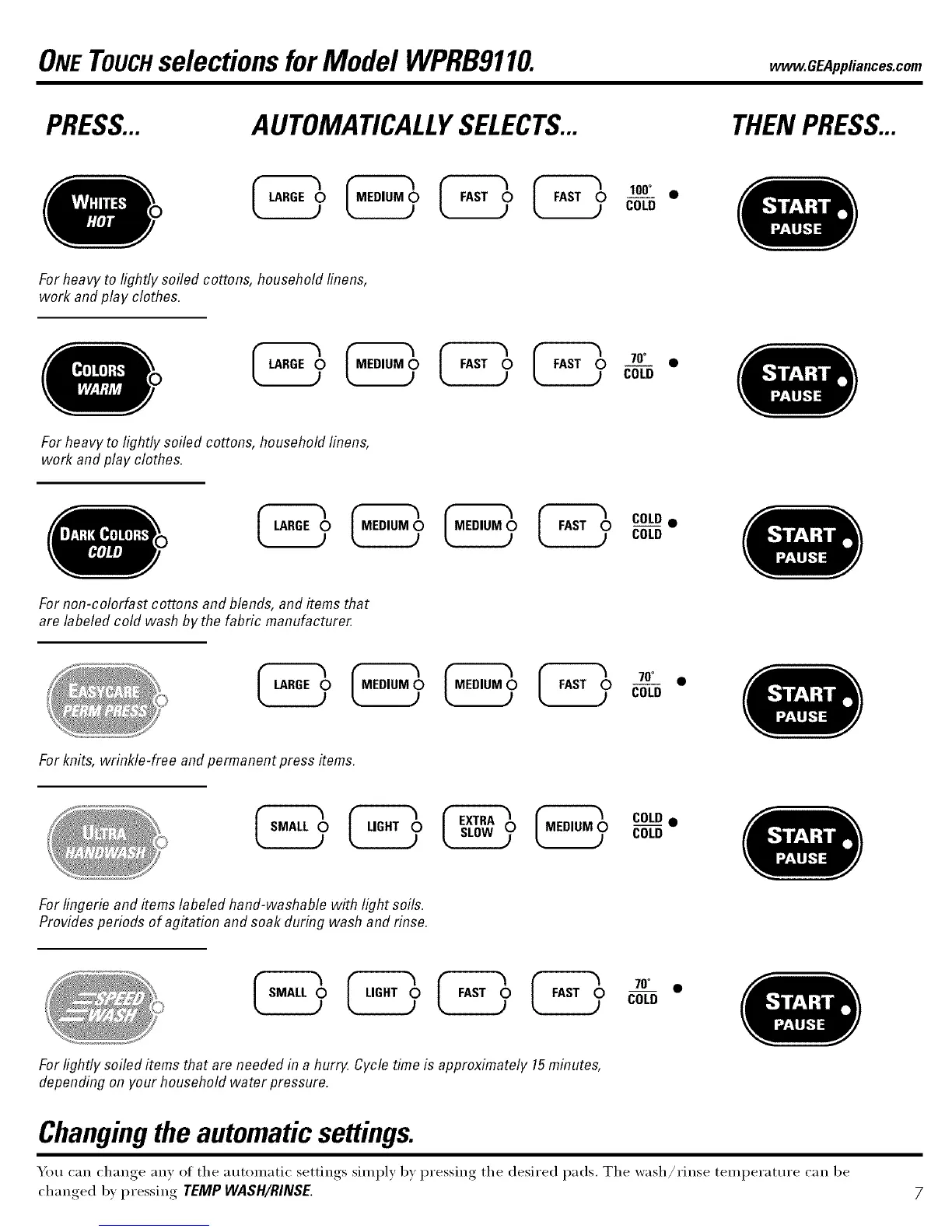ONE TOUCHselections forModel WPRB9110. _.CEA_lia.ces.com