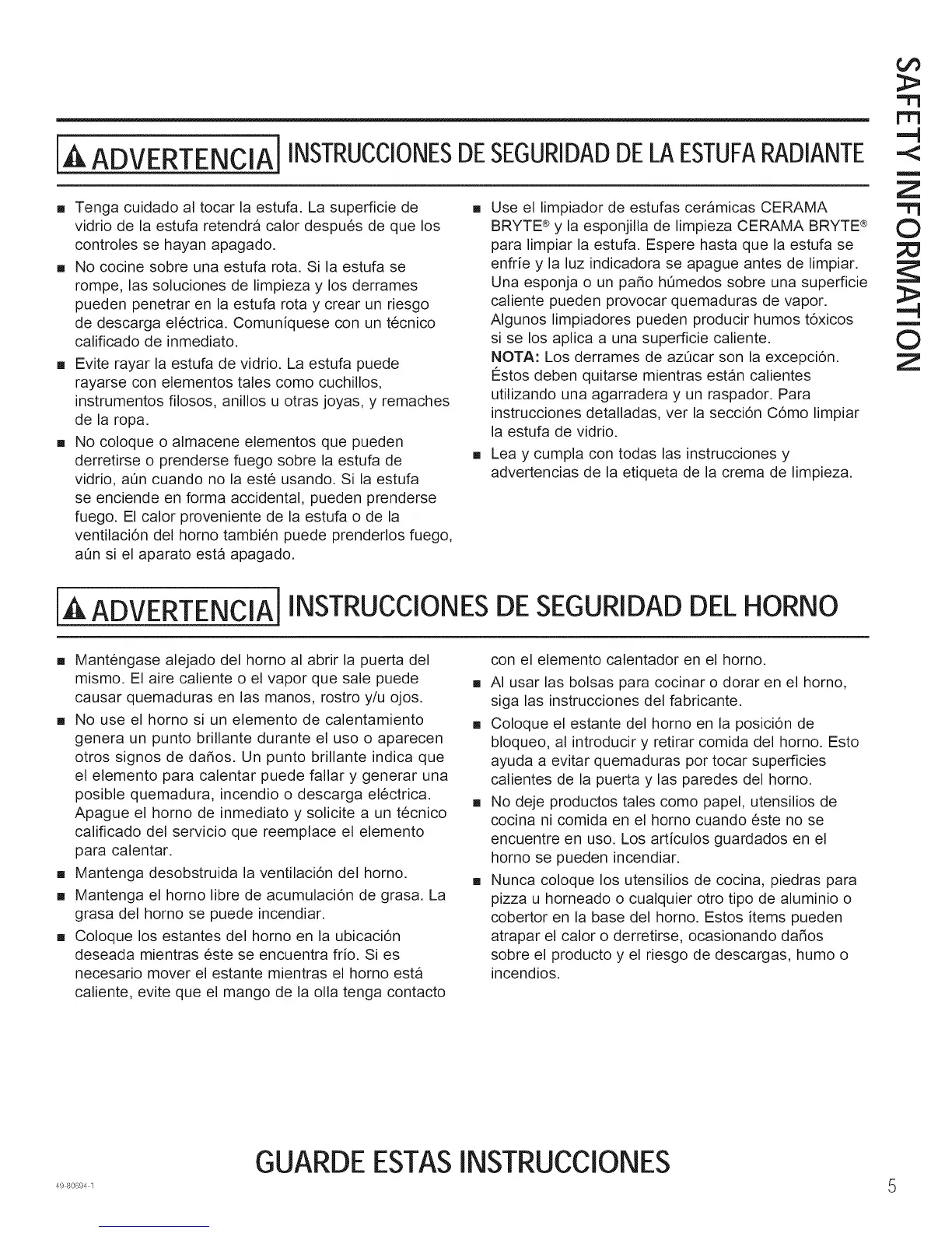 I,A,ADVERTENCIA1 INSTRUCCIONESDE SEGURIDAD DEL HORNO