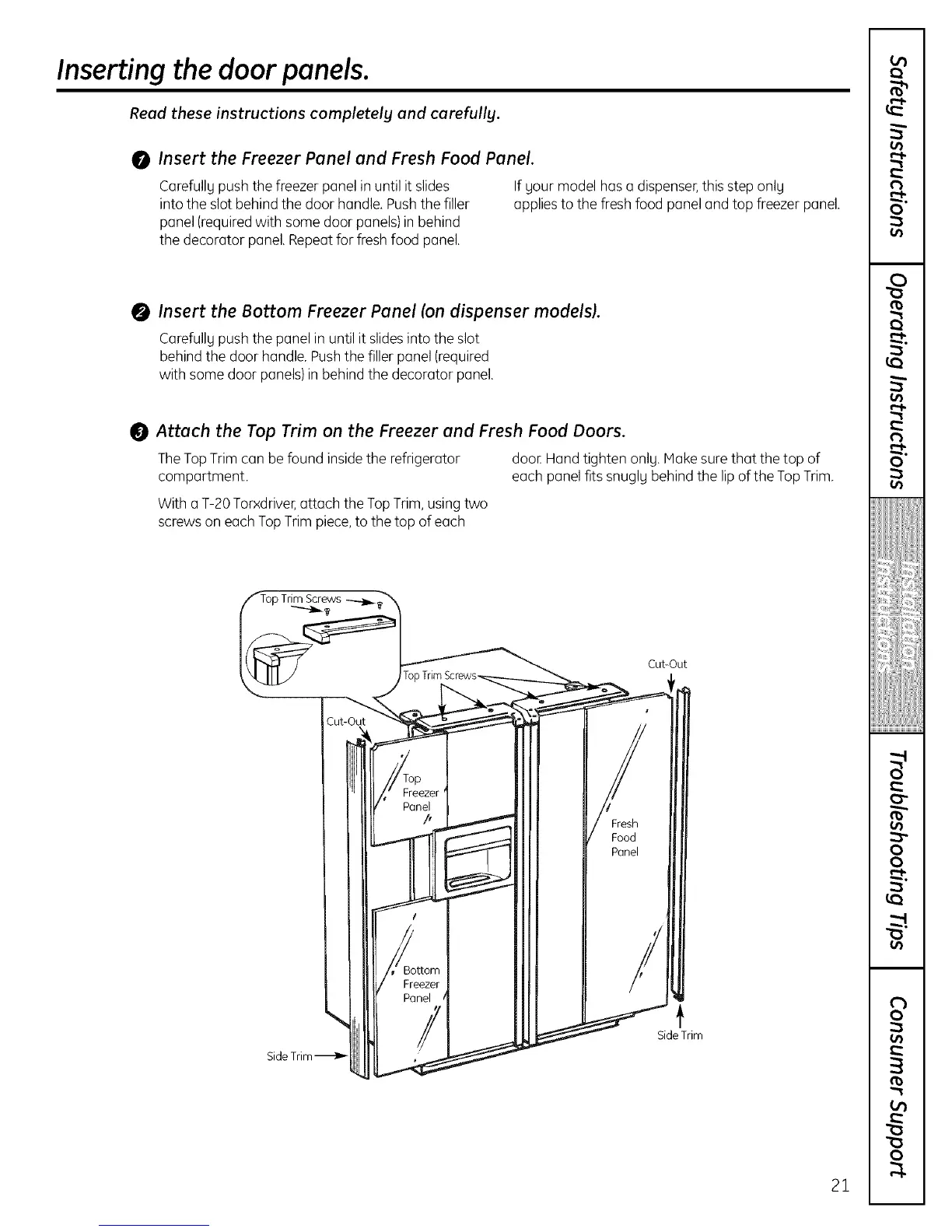 into the slot behind the door handle.Pushthe filler appliesto the fresh food panel and top freezer panel.