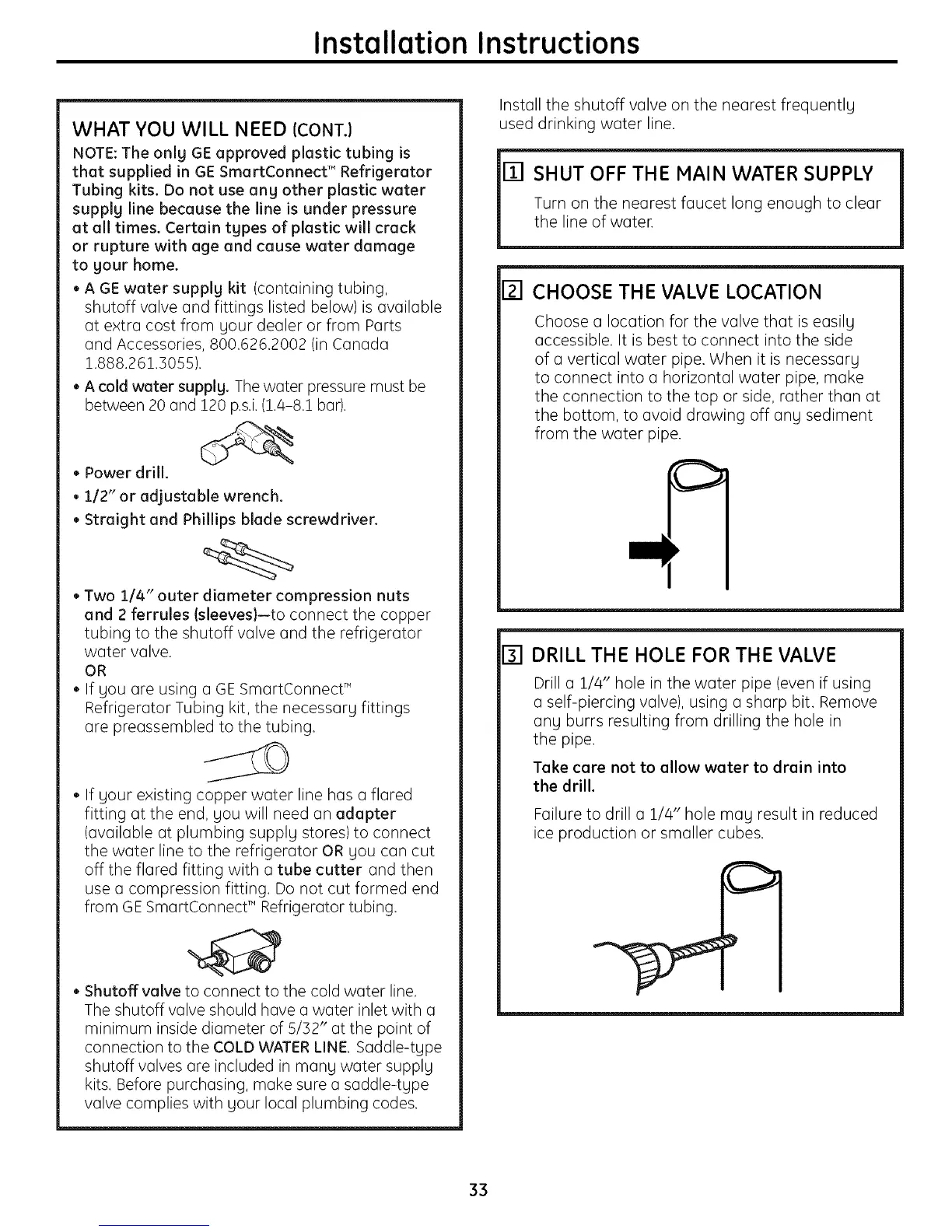 • A GE water supplg kit (containing tubing,