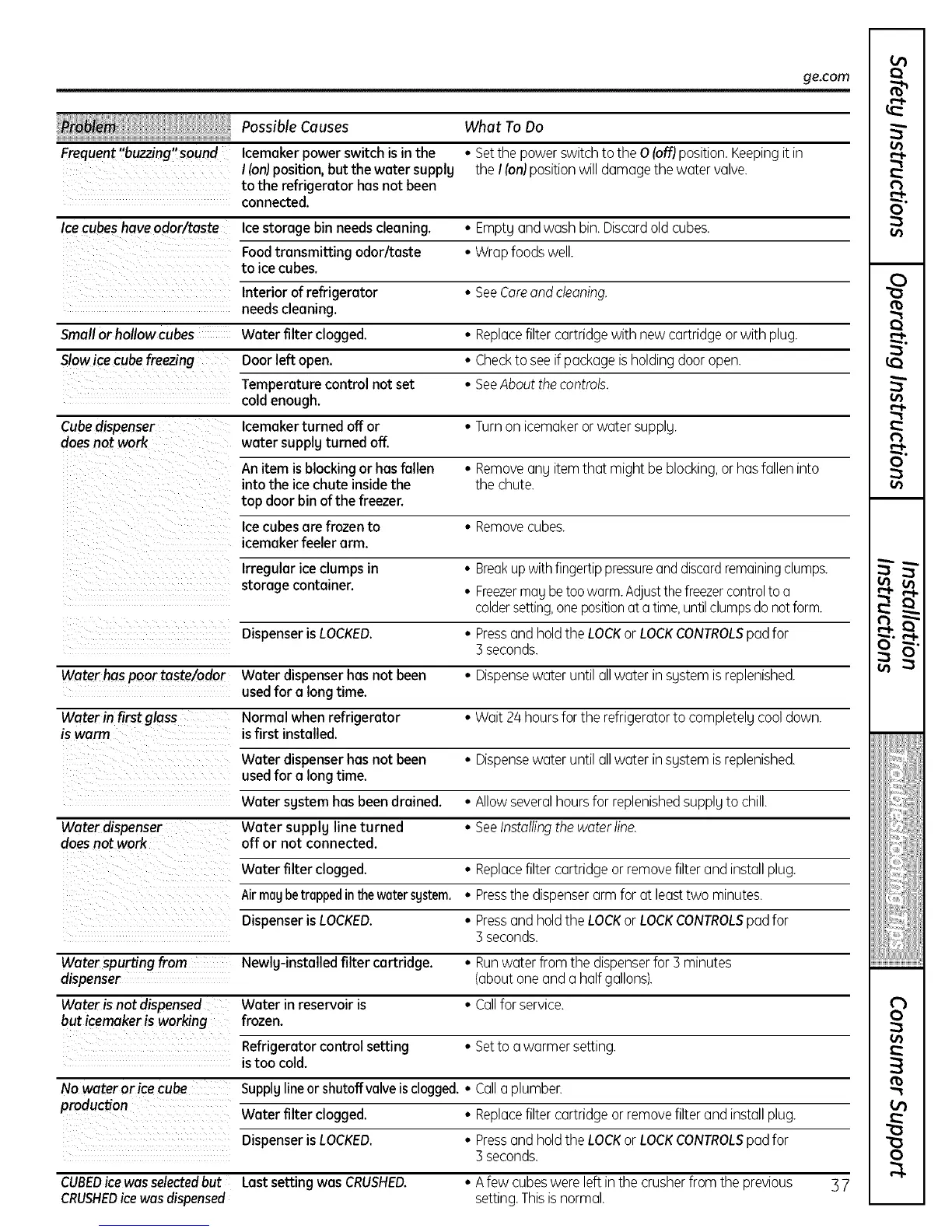 Small or hollow cubes Water filter clogged. ° Replacefilter cartridgewith new cartridge orwith plug.