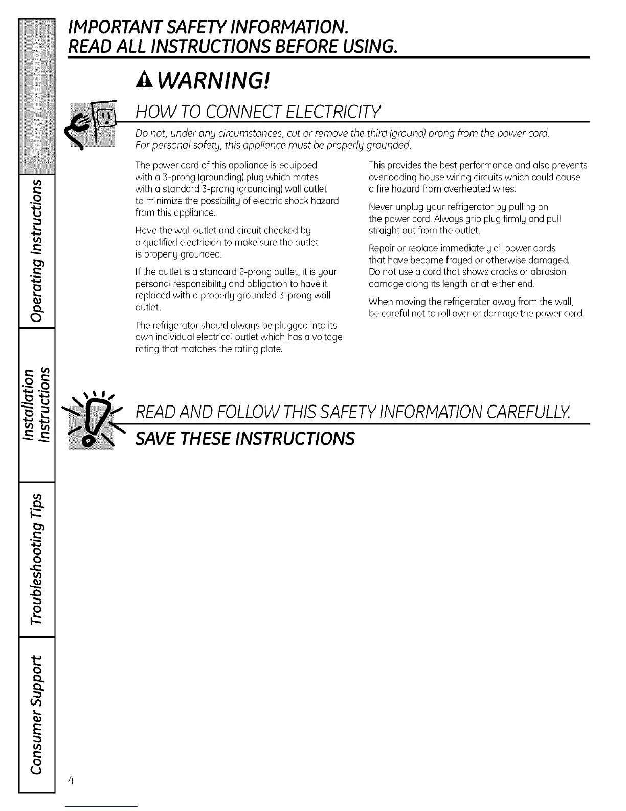 The refrigerator should always be plugged into its