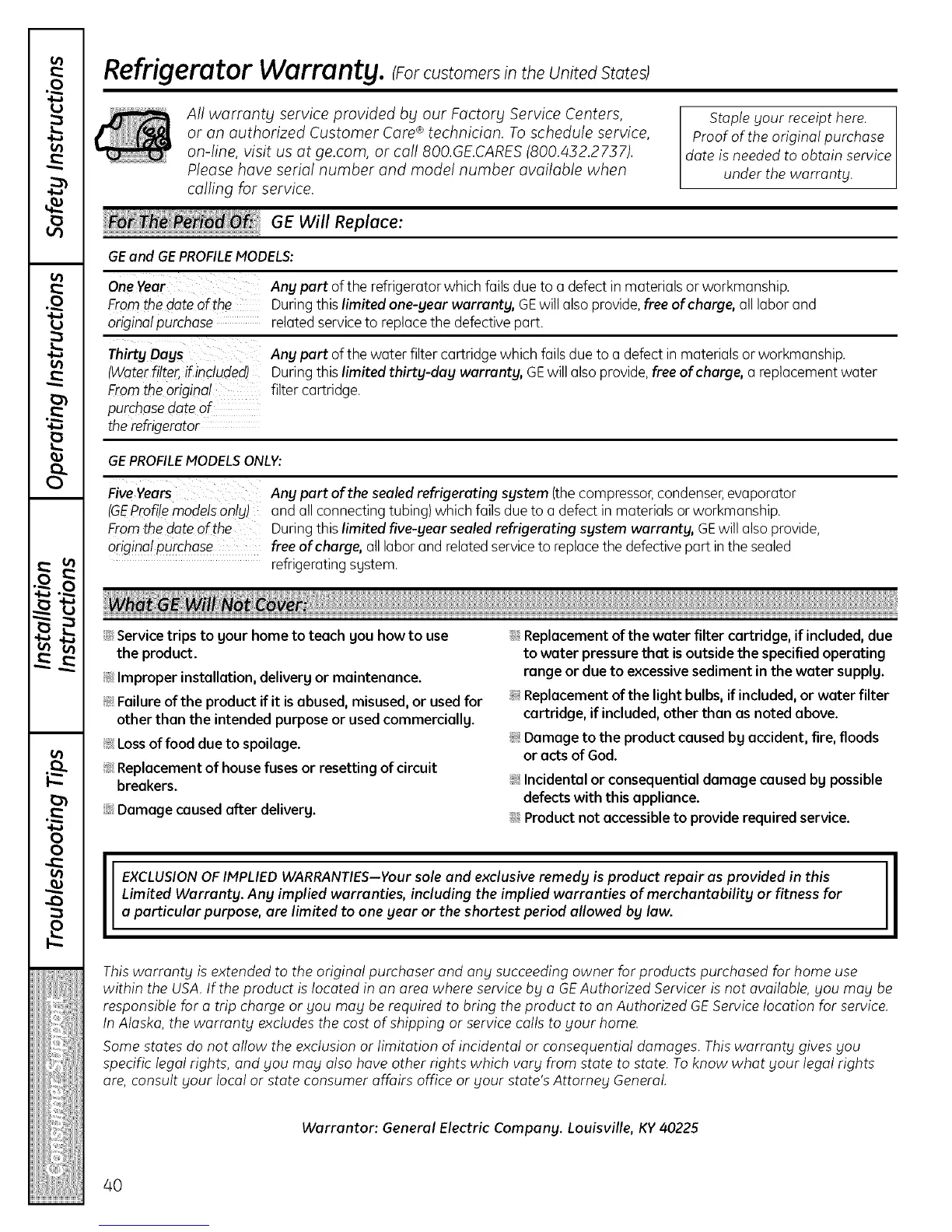 Warrantor: General Electric Campany. Louisville, KY 40225