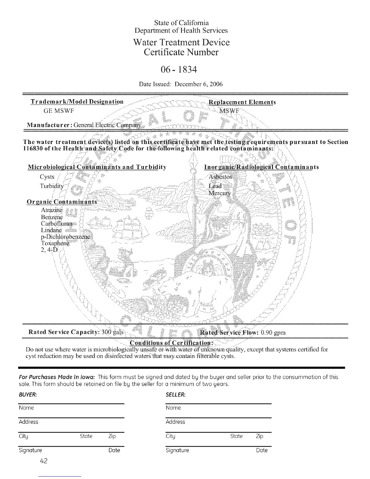For Purchases Made In Iowa: This form must be signed and dated bg the buger and seller prior to the consummation of this