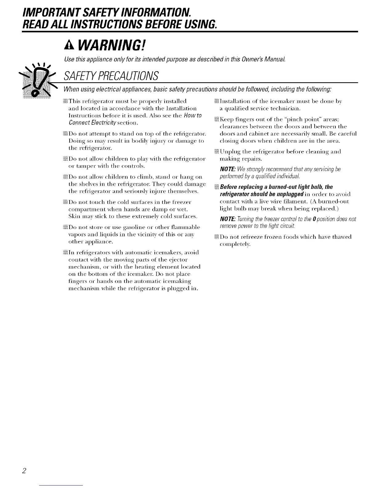 ::_Unplug the refl'igerator before cleaning and