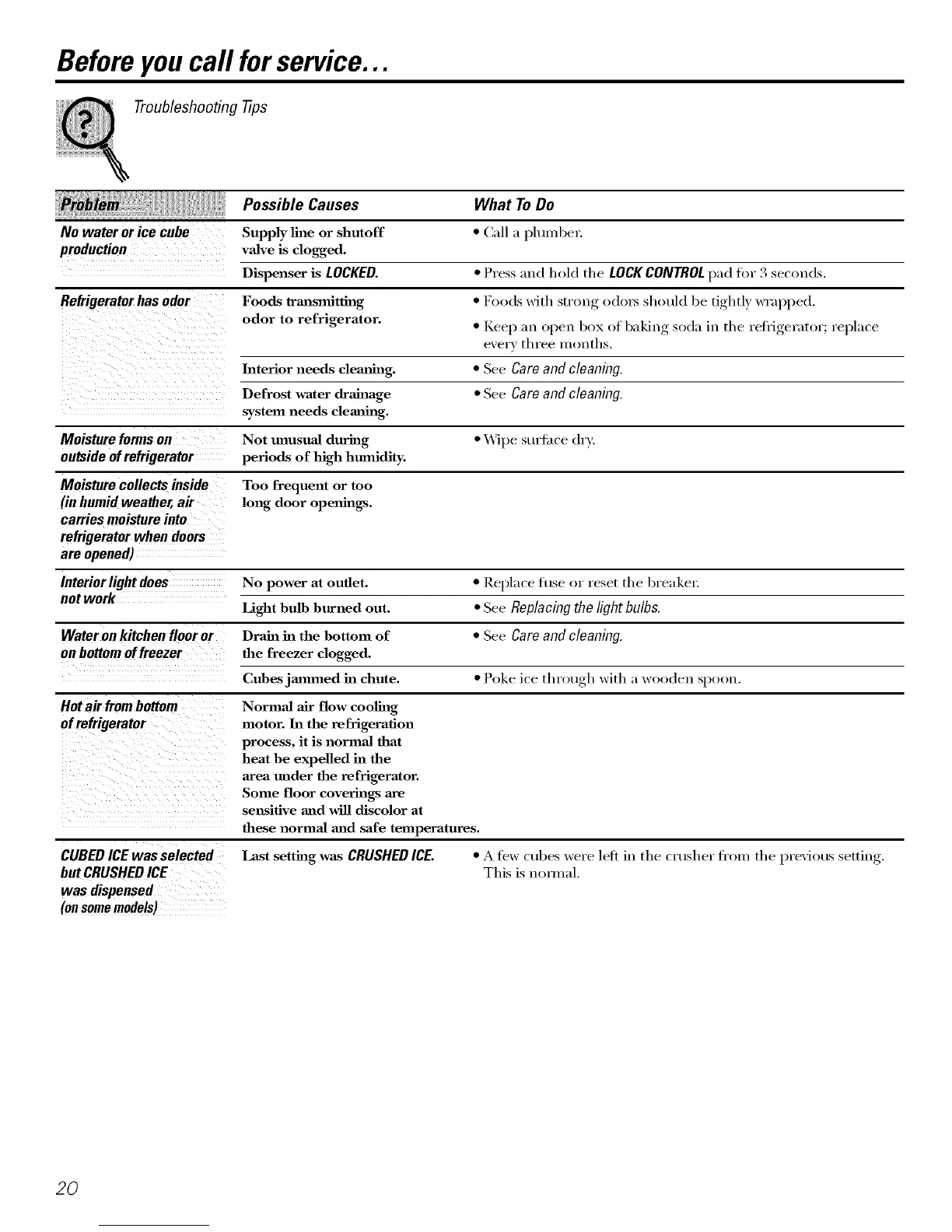 No water or ice cube Supply line or shutoff * Call a phunbei: