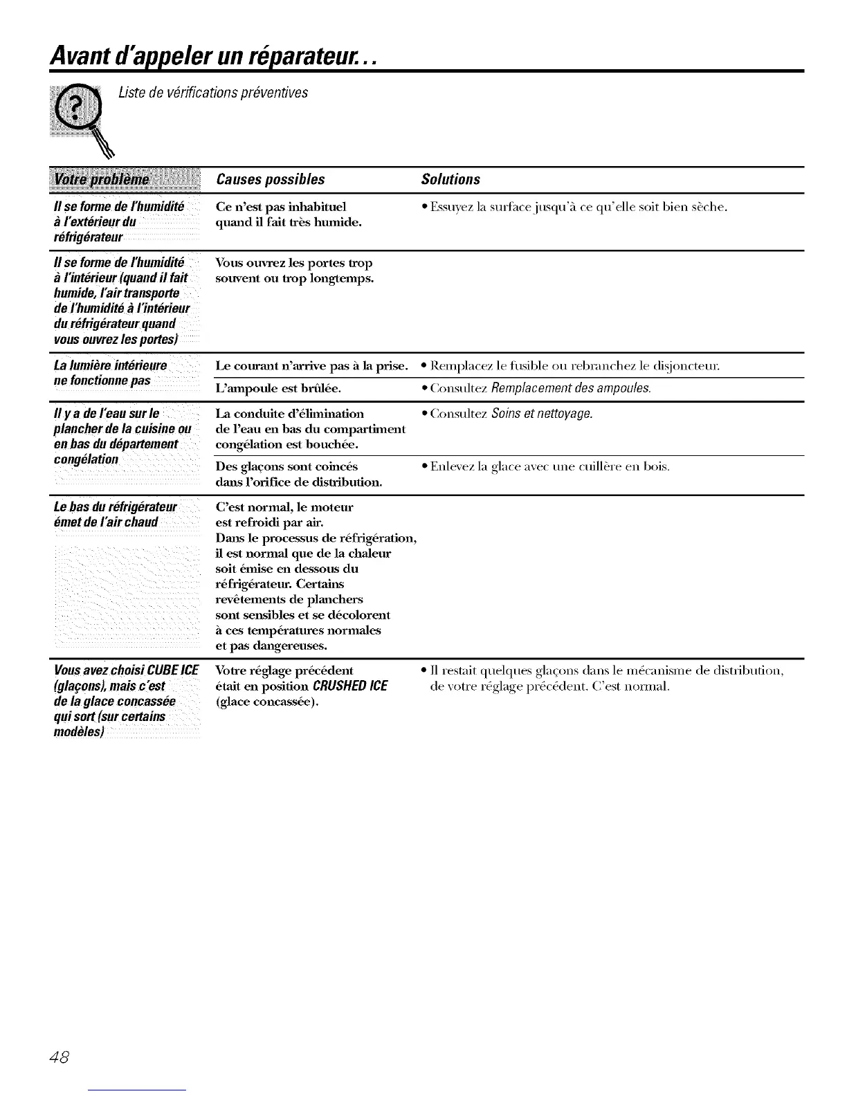 Lalumi&reinterieure Le courmlt n'arrive pas fi la prise. * Remplacez le fllsible ou rebranchez le disionctetm