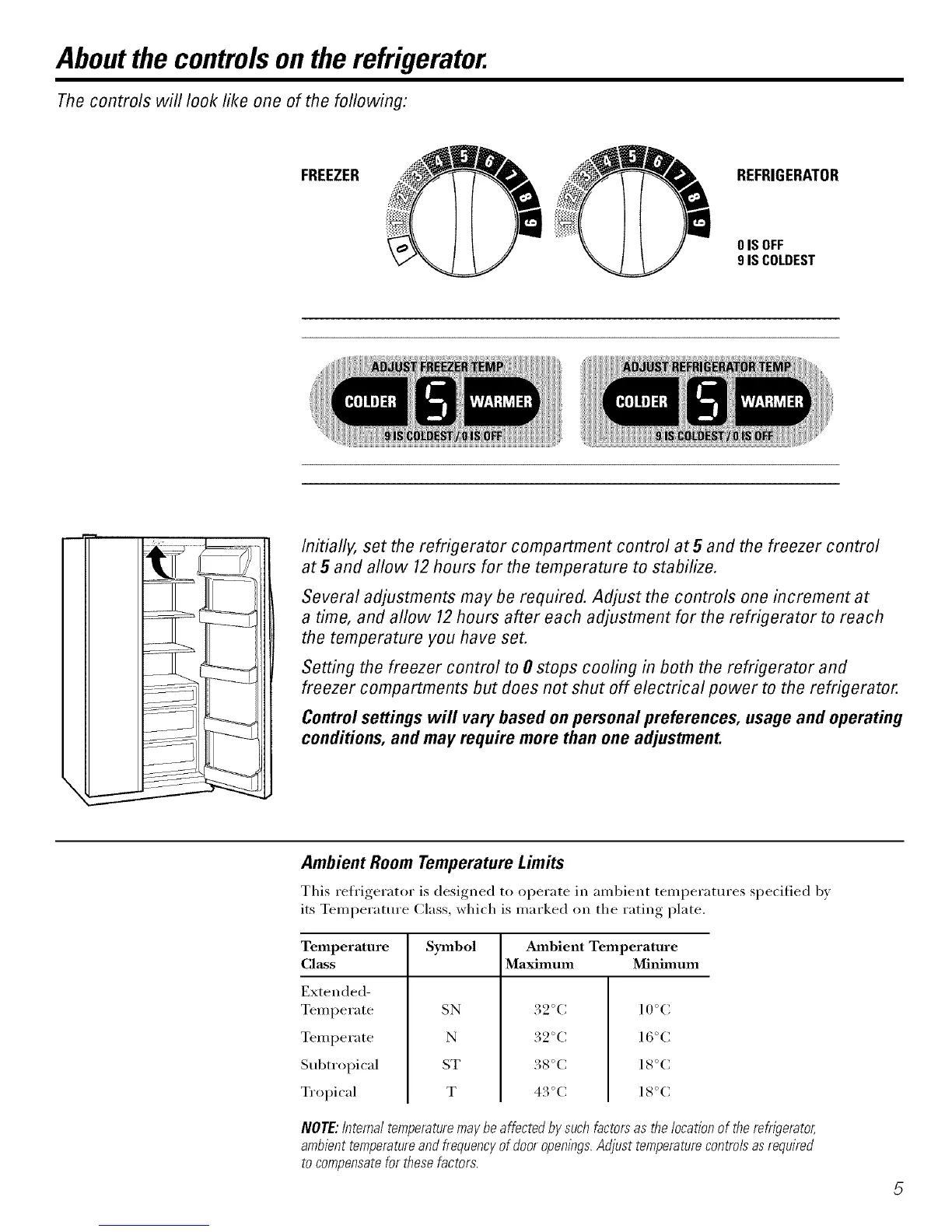 initially, set the refrigerator compartment control at5 and the freezer control