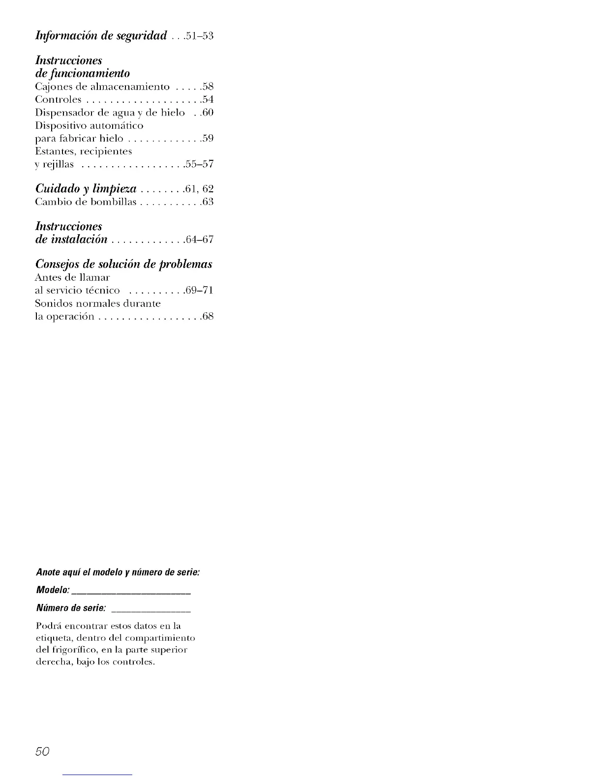 Dispensador de agua y de hielo . .60