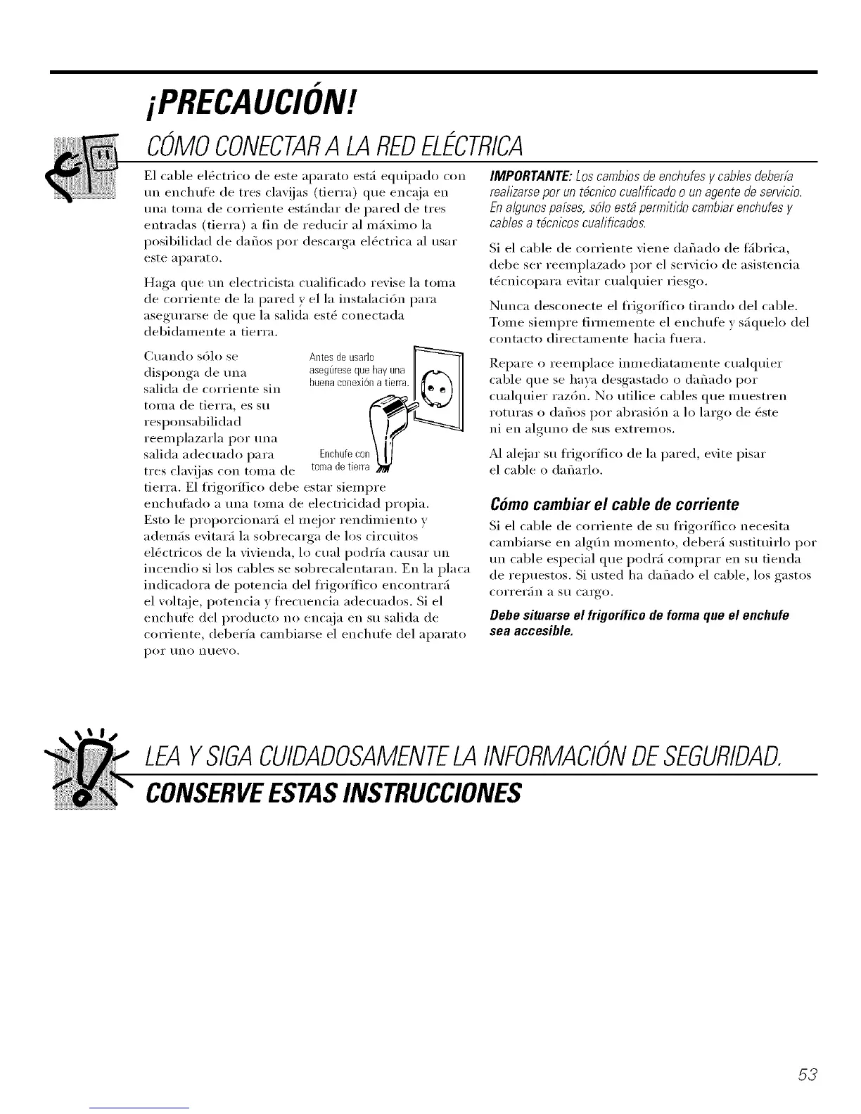 un enchufe de tres clav!ias (tierra) que encaja en