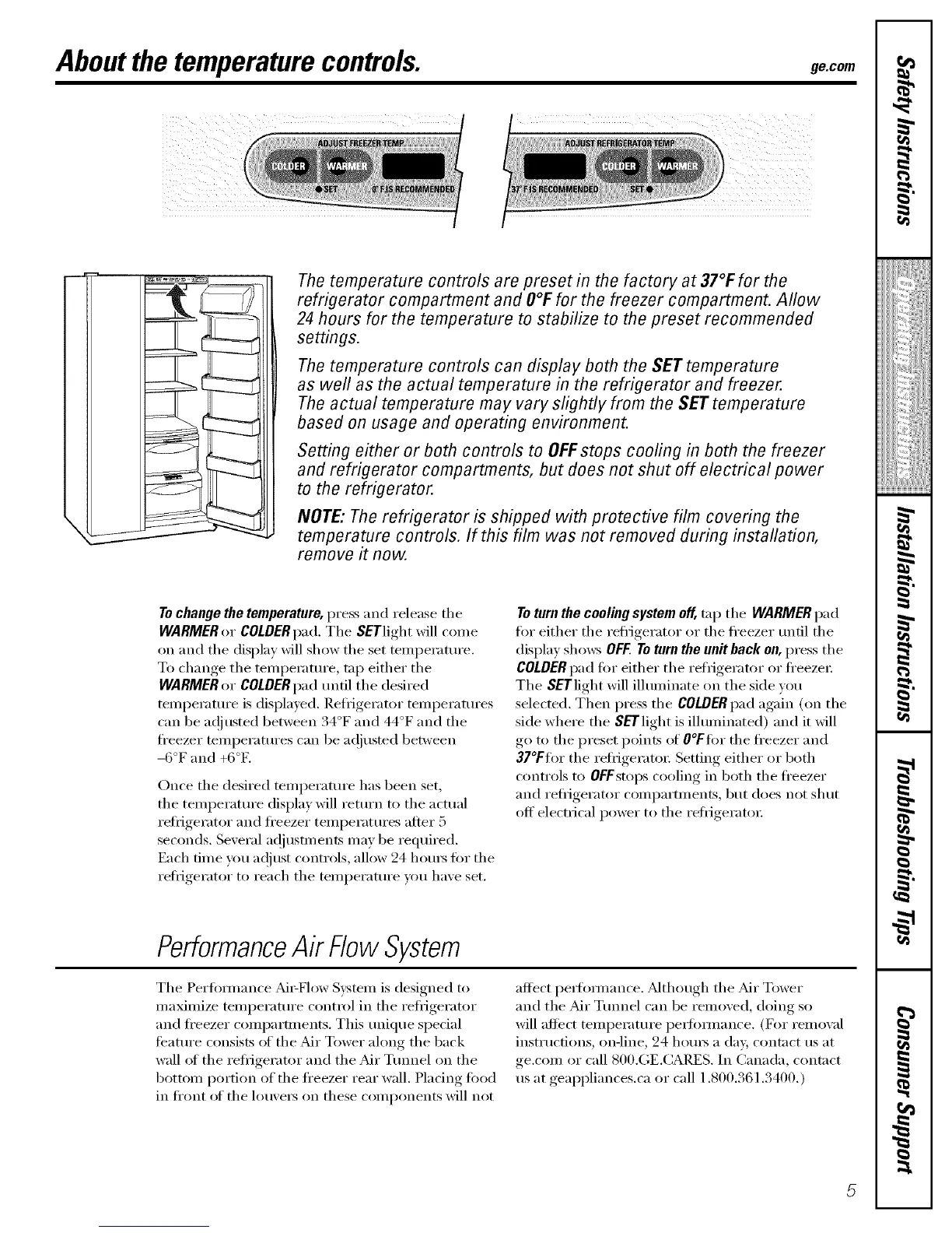 refrigerator compartment and O°Ffor the freezer compartment. Allow