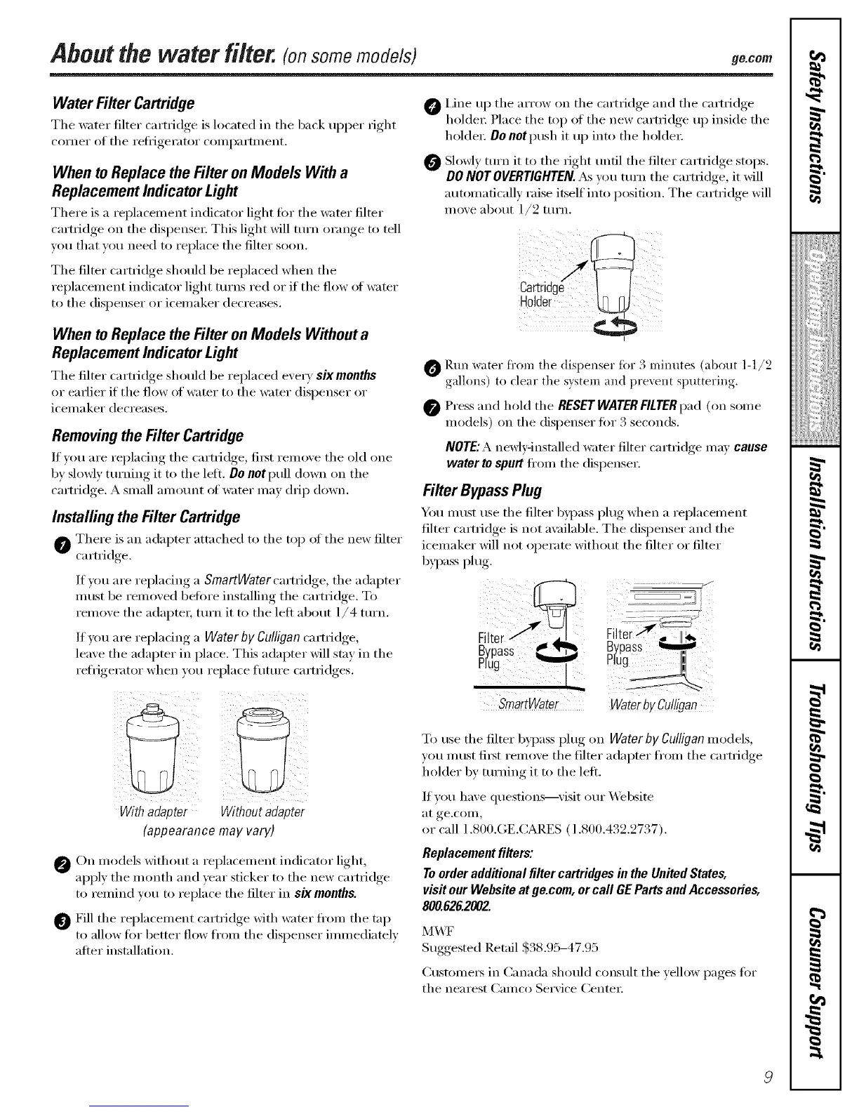 visit our Website at ge.com, or call GE Parts and Accessories,