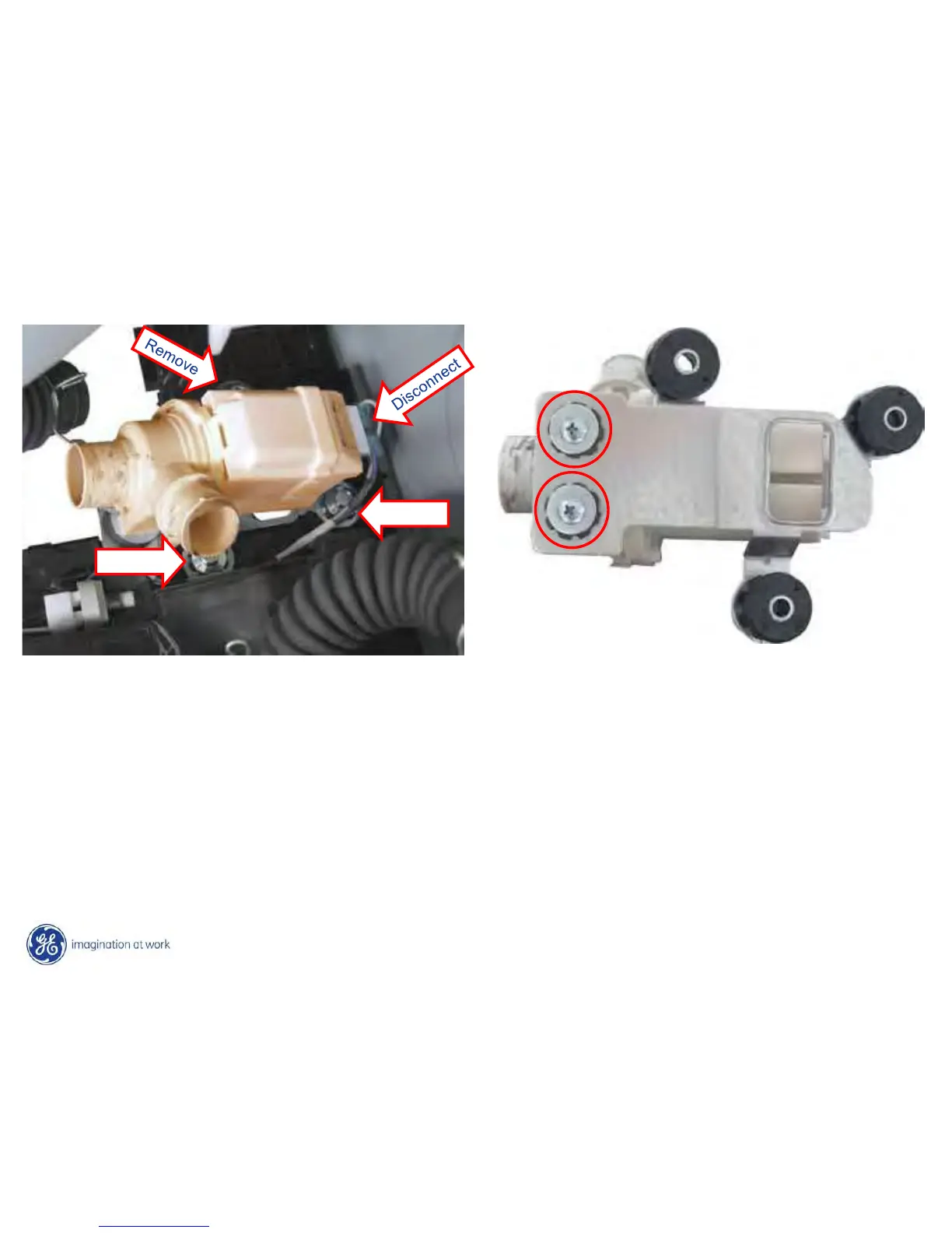 • Remove the 2 Phillips-head screws that hold the drain pump to the