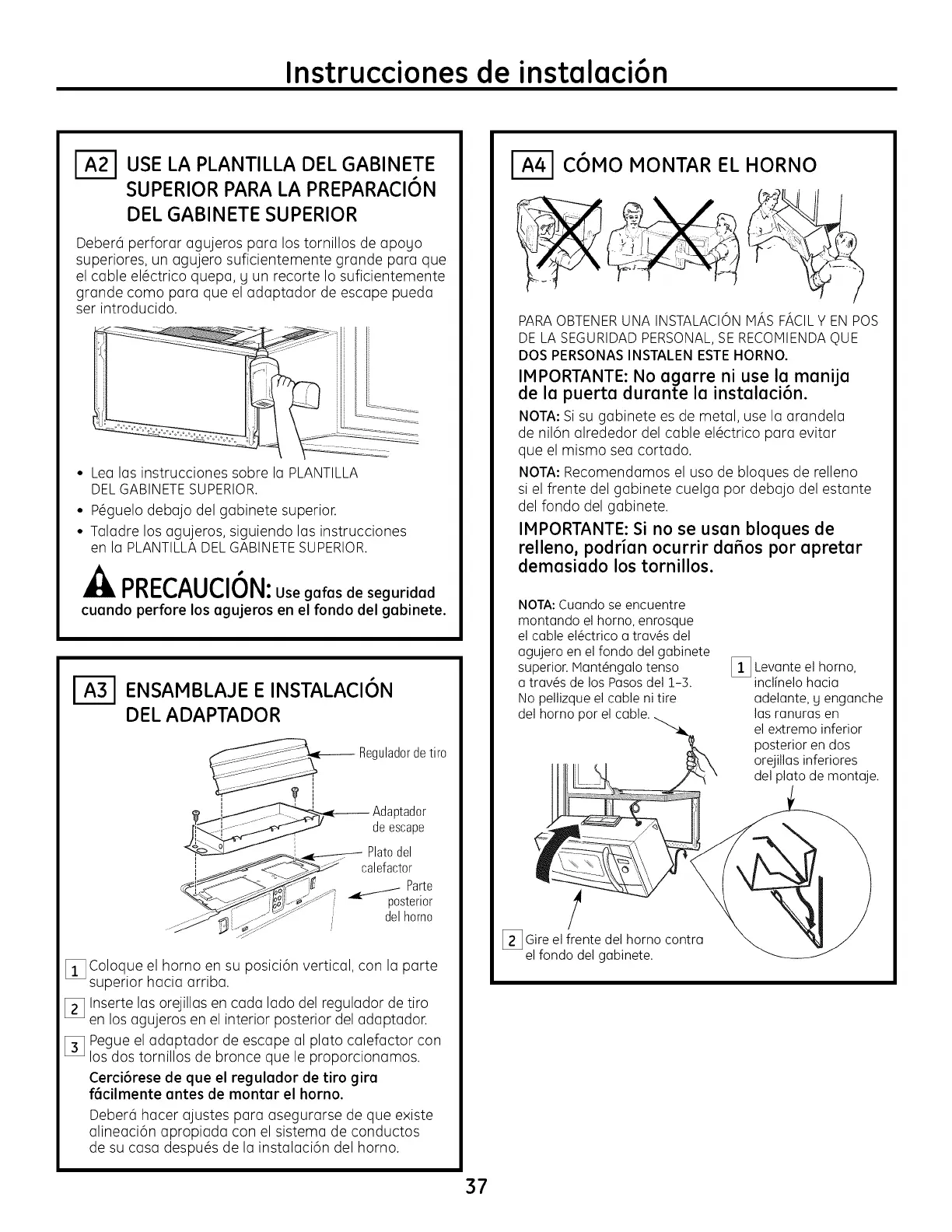 GE PVM1790 - El Acoptacon Oo. Ee Eesesessseeeteteescecesesereeeseees; Ensamblaje E Instalacion; Preparacién del Gabinete Superior