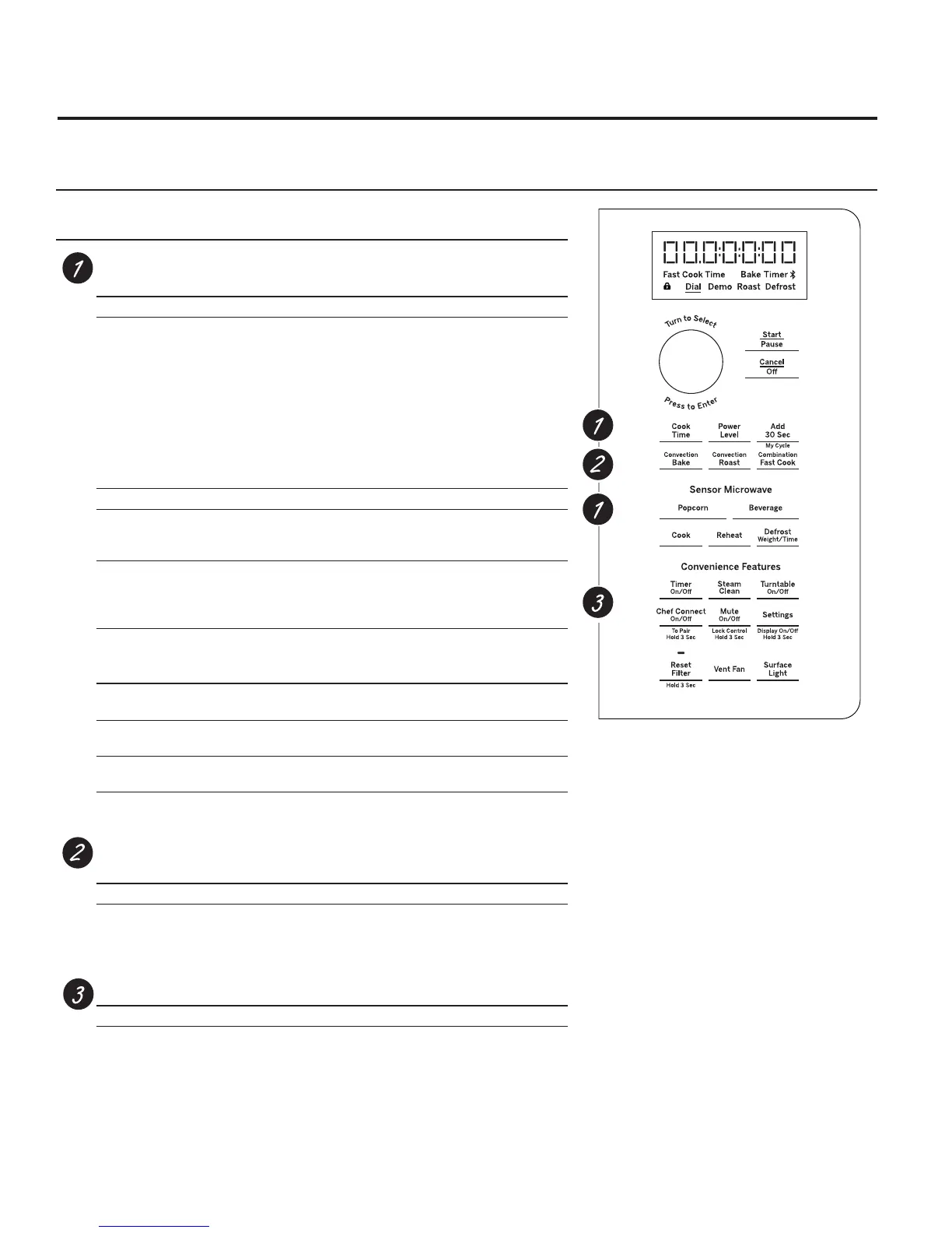 Es posible cocinar en modo Microondas, Horneado por convección, Asado por convección u Horneado rápido combinado.