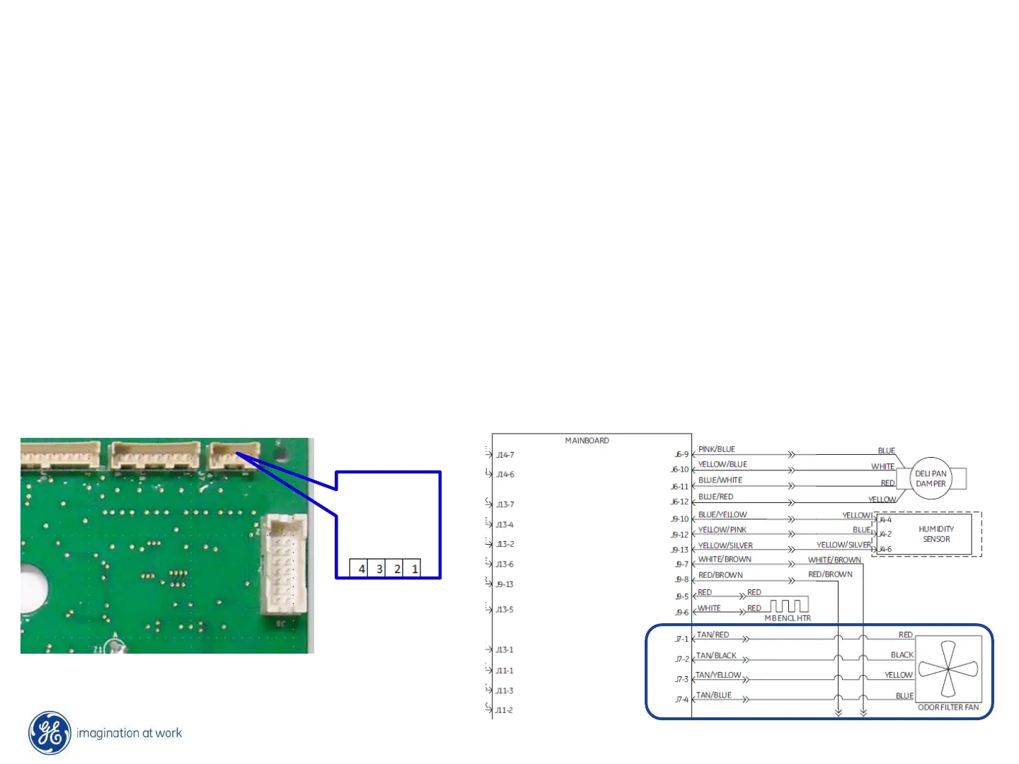 Odor filter fan inoperative. DC voltage can be checked at the main board