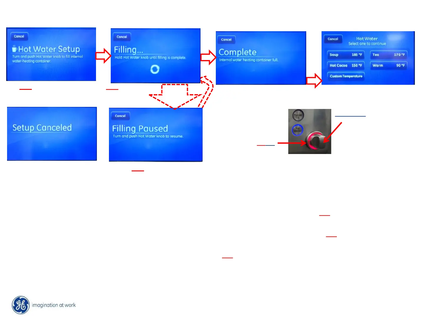 • The main board will activate the isolation water valve, the door board will activate the Hot Water valve to fill the hot water tank, and the LCD screen will