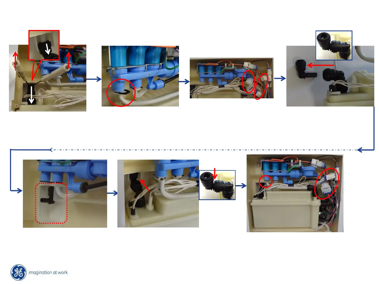Remove access panel from the Left FF inner door panel to expose both water tanks and water valve.