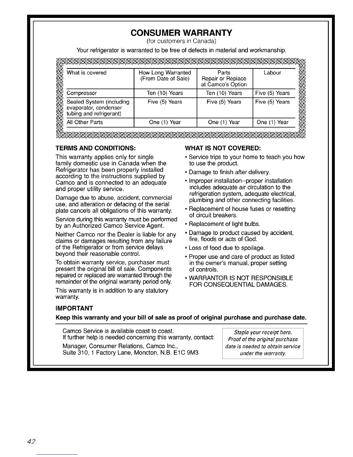 Your refrigerator is warranted to be free of defects in material and workmanship.