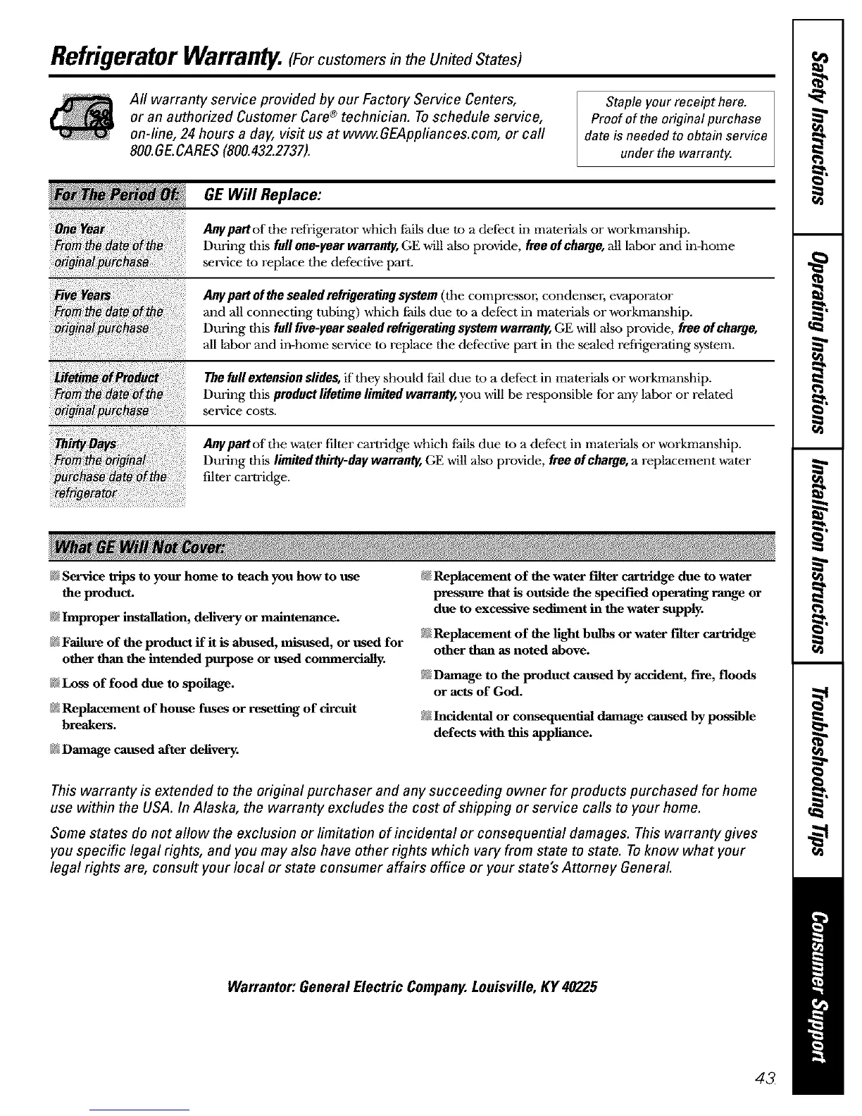 on-line, 24 hours a day, visit us at www.GEAppllances.com, or call