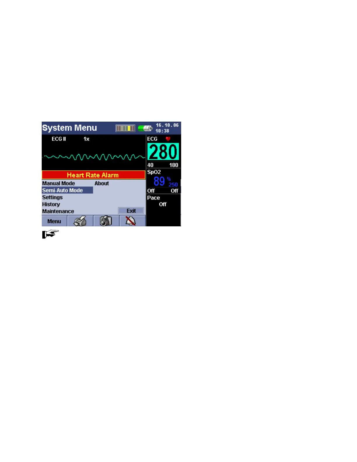 on, selection of Semi-Auto Mode, or while already in Semi-Auto mode, the device will automatically switch to Manual
