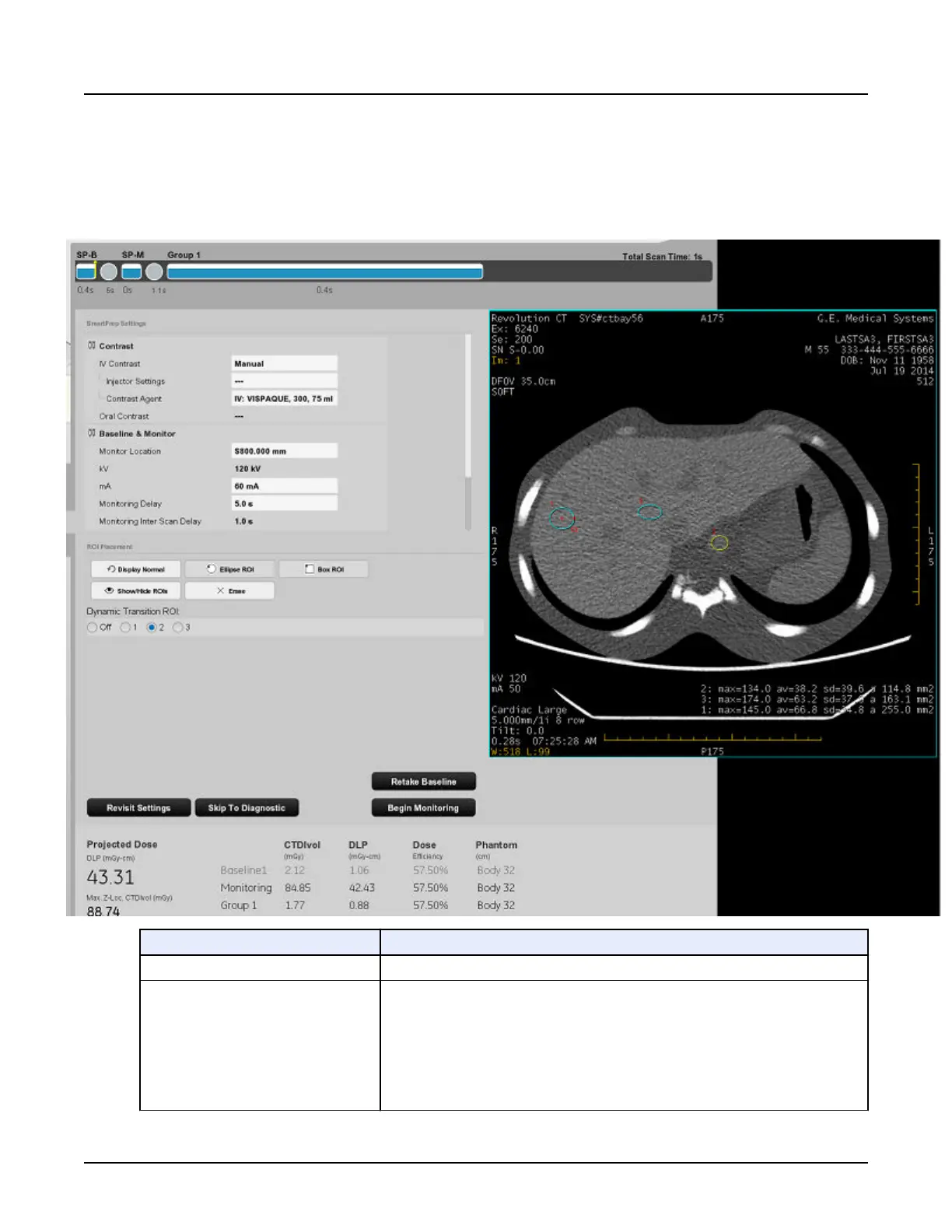 ROI Placement Use these tools to put ROIs on the baseline image. You may place from 0 to 3 ROIs on
