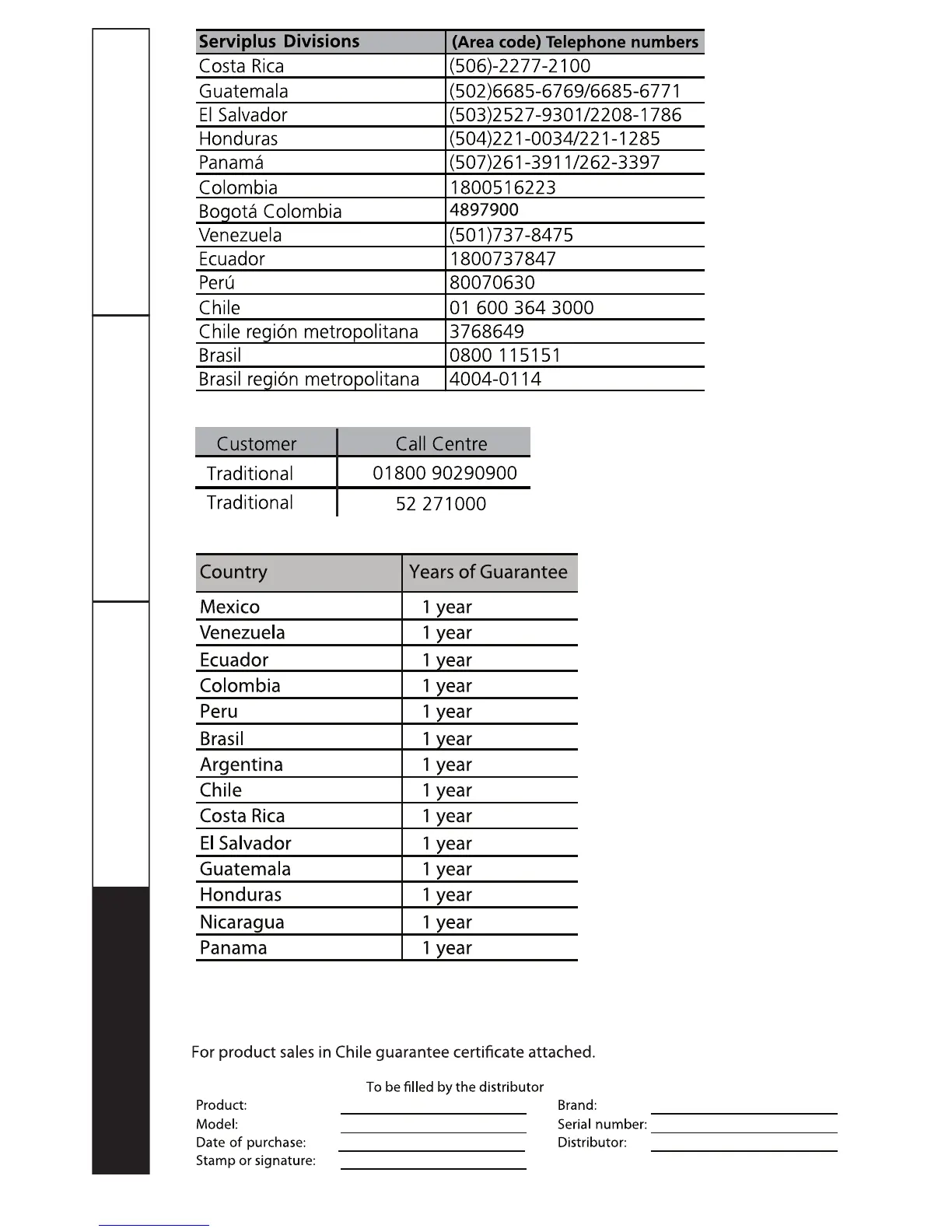 GE RGS1951Z - Serviplus Divisions; Table of Guarantees
