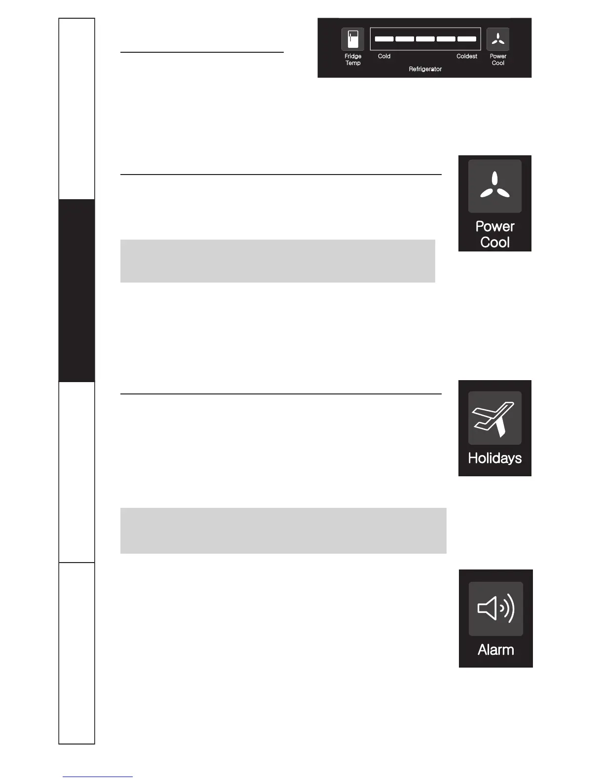 botão Holidays. Ao abrir a porta do compartimento refrigerador a