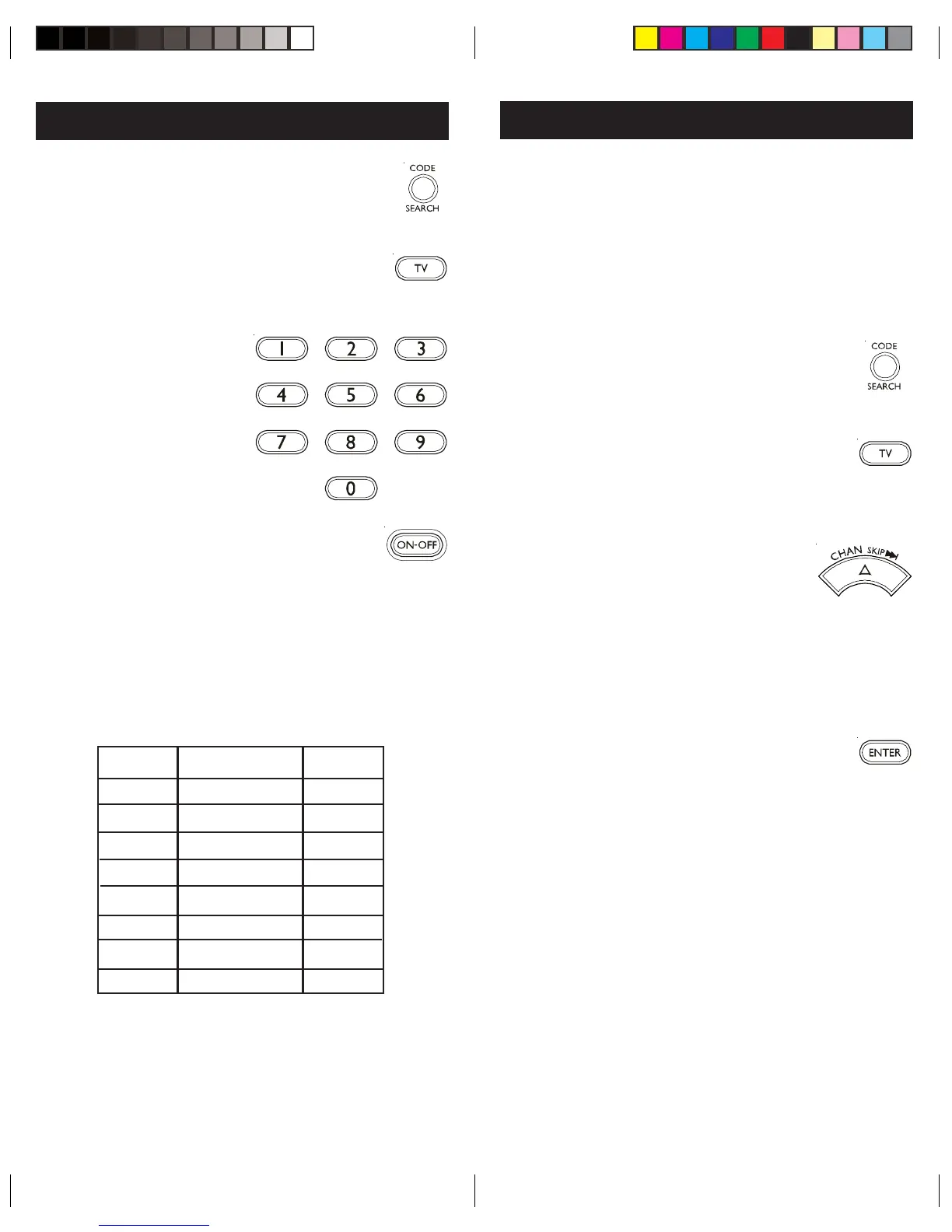 button, use PLAY (VCR only) or POWER instead. Code