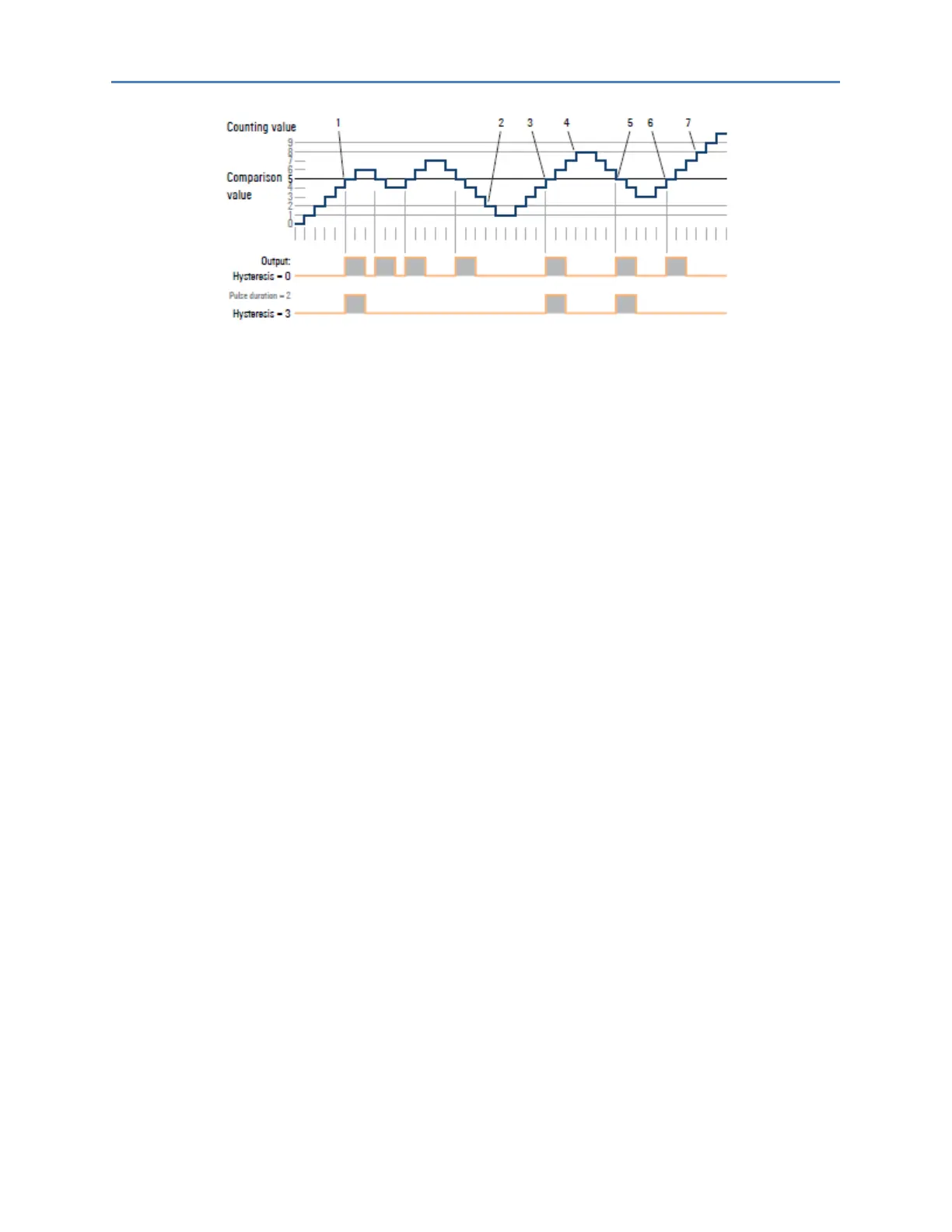 Operating Principle of the Hysterersis when Counter Value = Comparison Value, Pulse Duration 2
