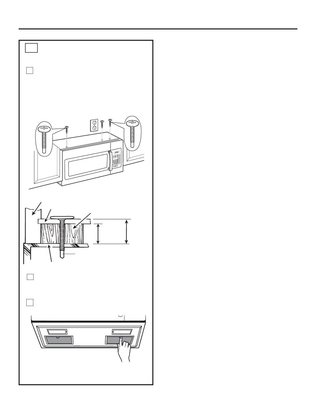 cabinet hole. Temporarily secure the microwave