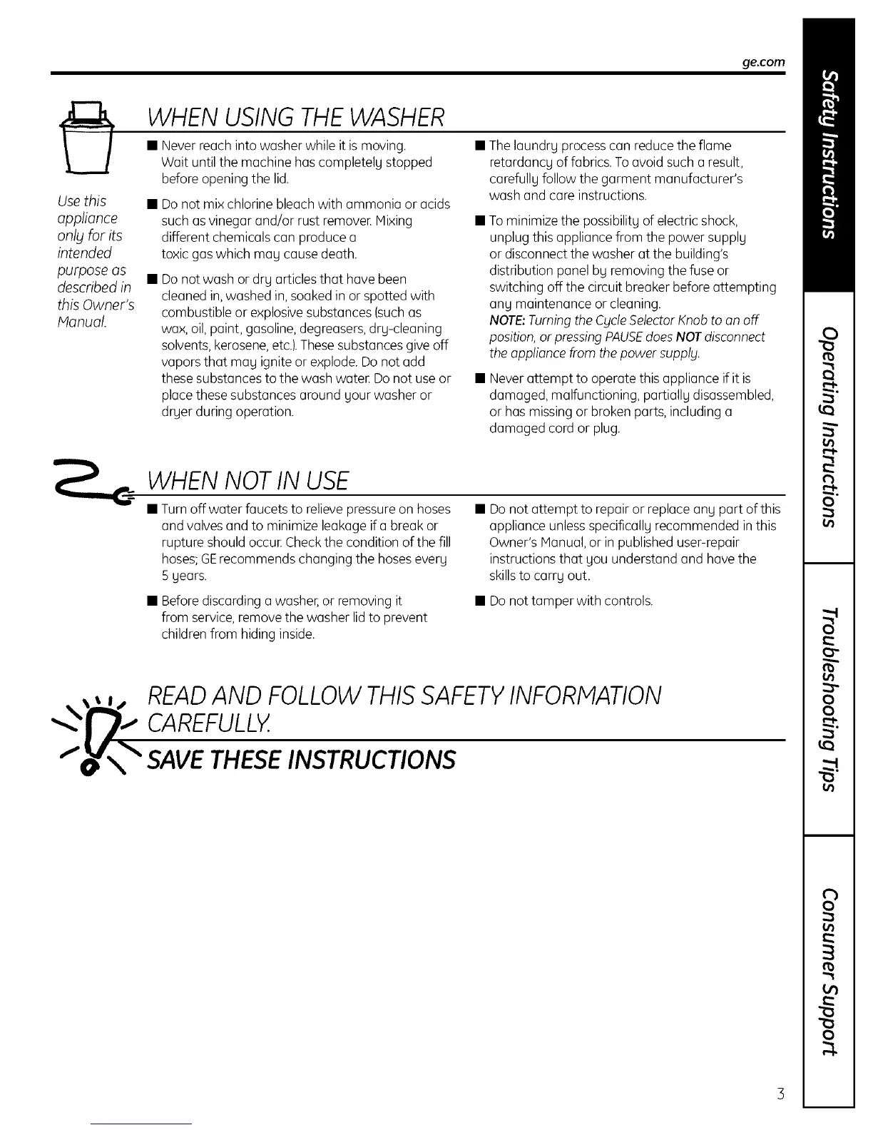 • Never reach into washer while it ismoving. • Thelaundry processcan reducethe flame