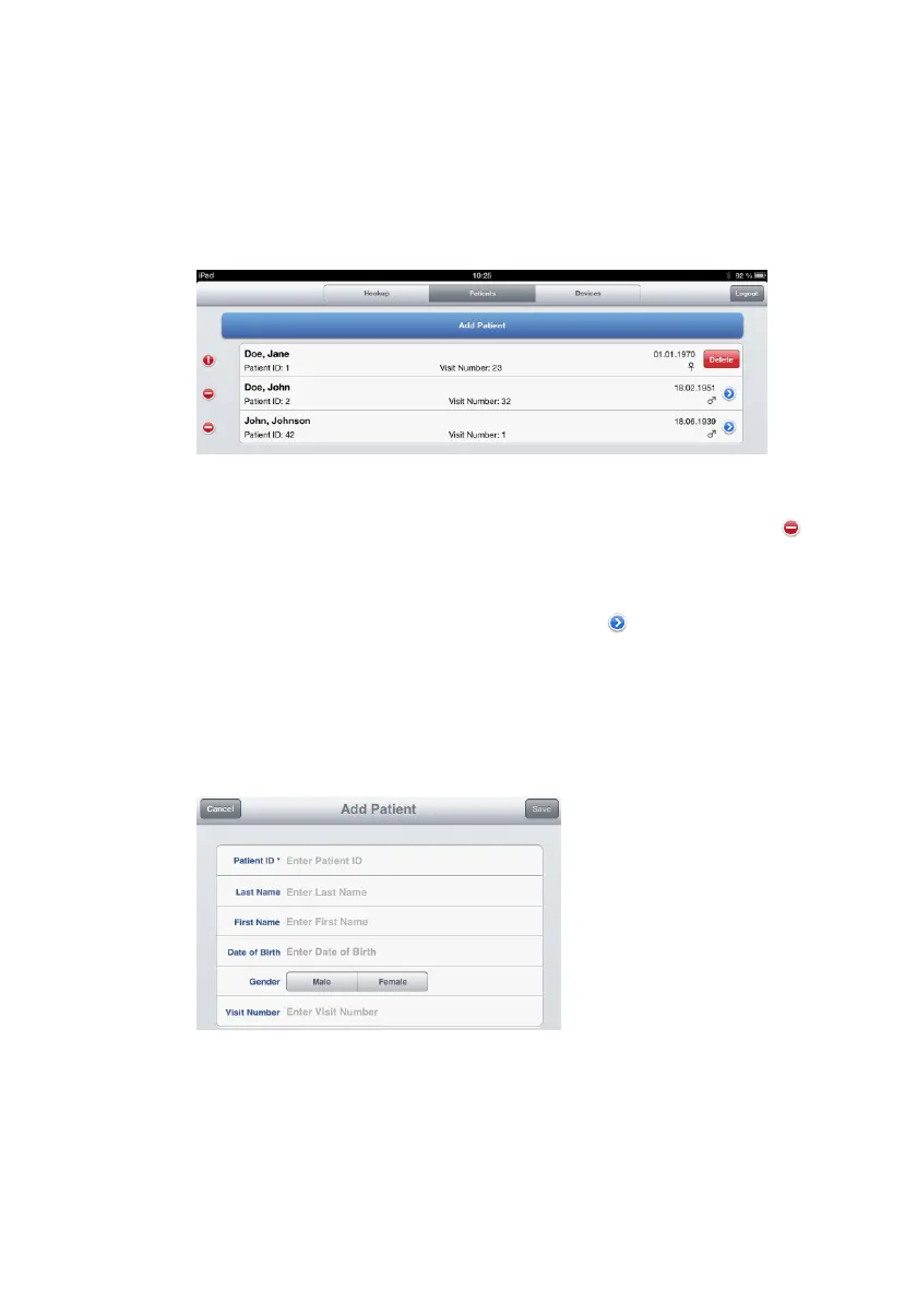 To edit a patient entry, touch the blue arrow to the right of the en-