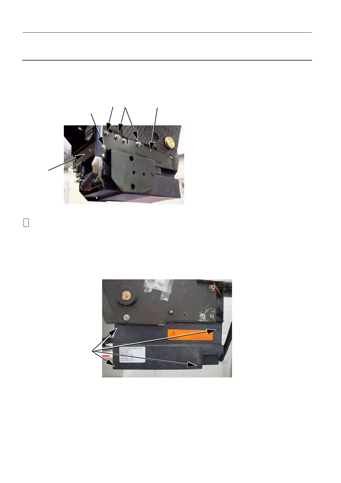 4. Remove the X-ray containment box. If necessary, first remove the two screws (4) which secure the
