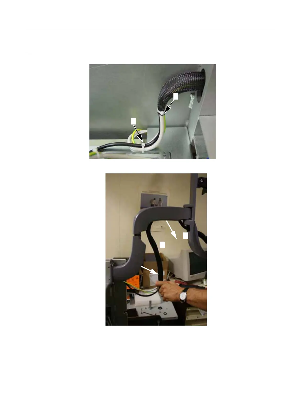 5. Carefully pull the harness (5) from the upper and lower parts of the rotative arm.