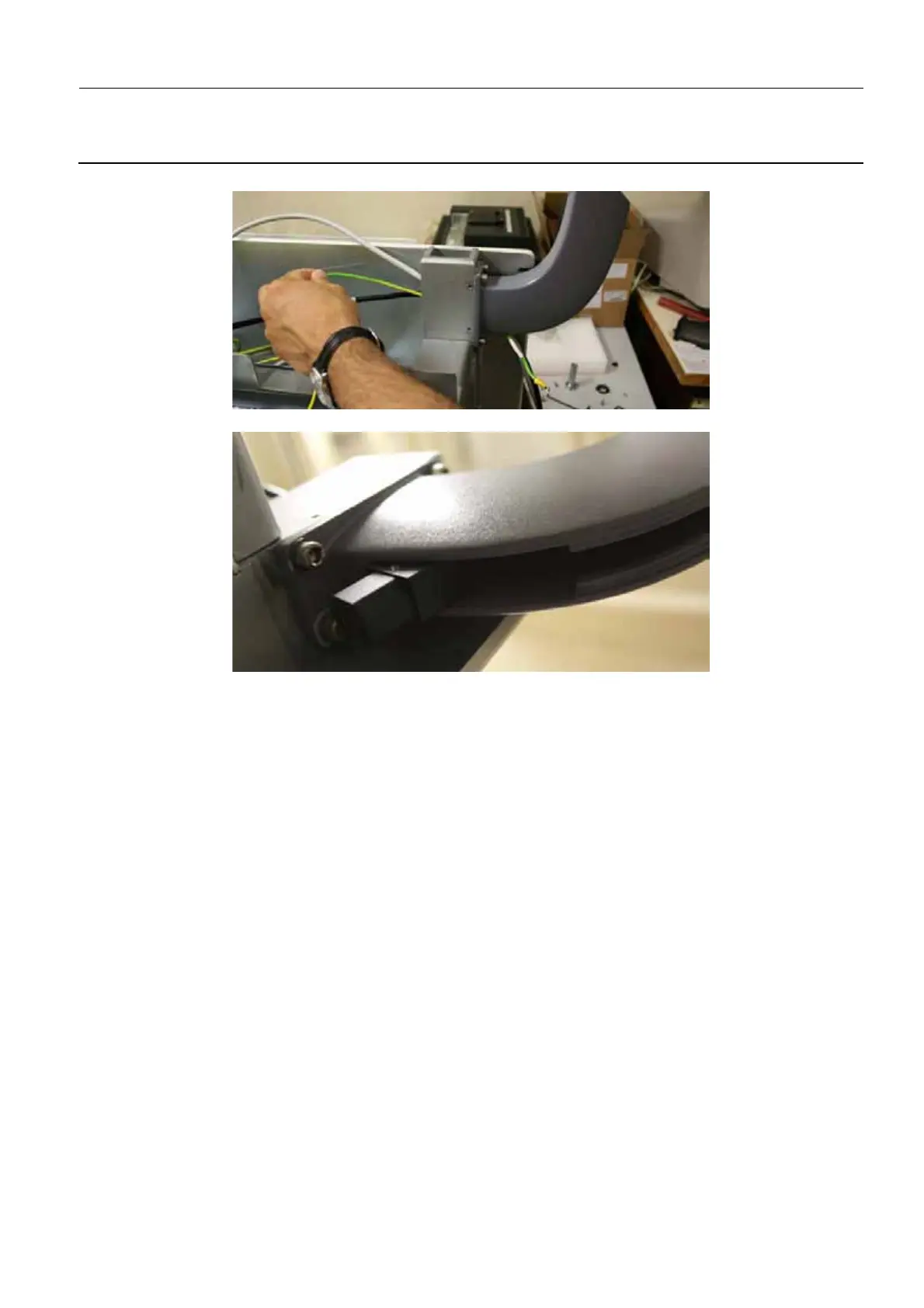 b. Thread the power cable through the opening of the rotative arm support as shown below.