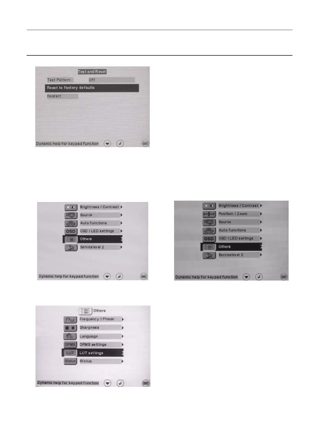 8. Press the Key2 button to enter the Others menu, then keep pressing the Key1 button until LUT set-