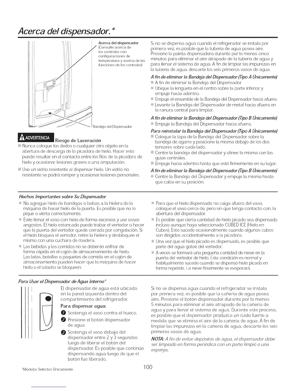 Para Usar el Dispensador de Agua Interno *