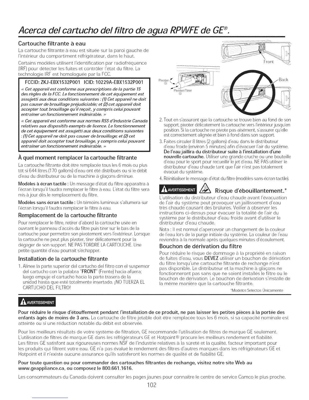 Pour les meilleurs resultats de votre systeme de filtration, GE recommande I'utilisation de filtres de marque GE seulement,