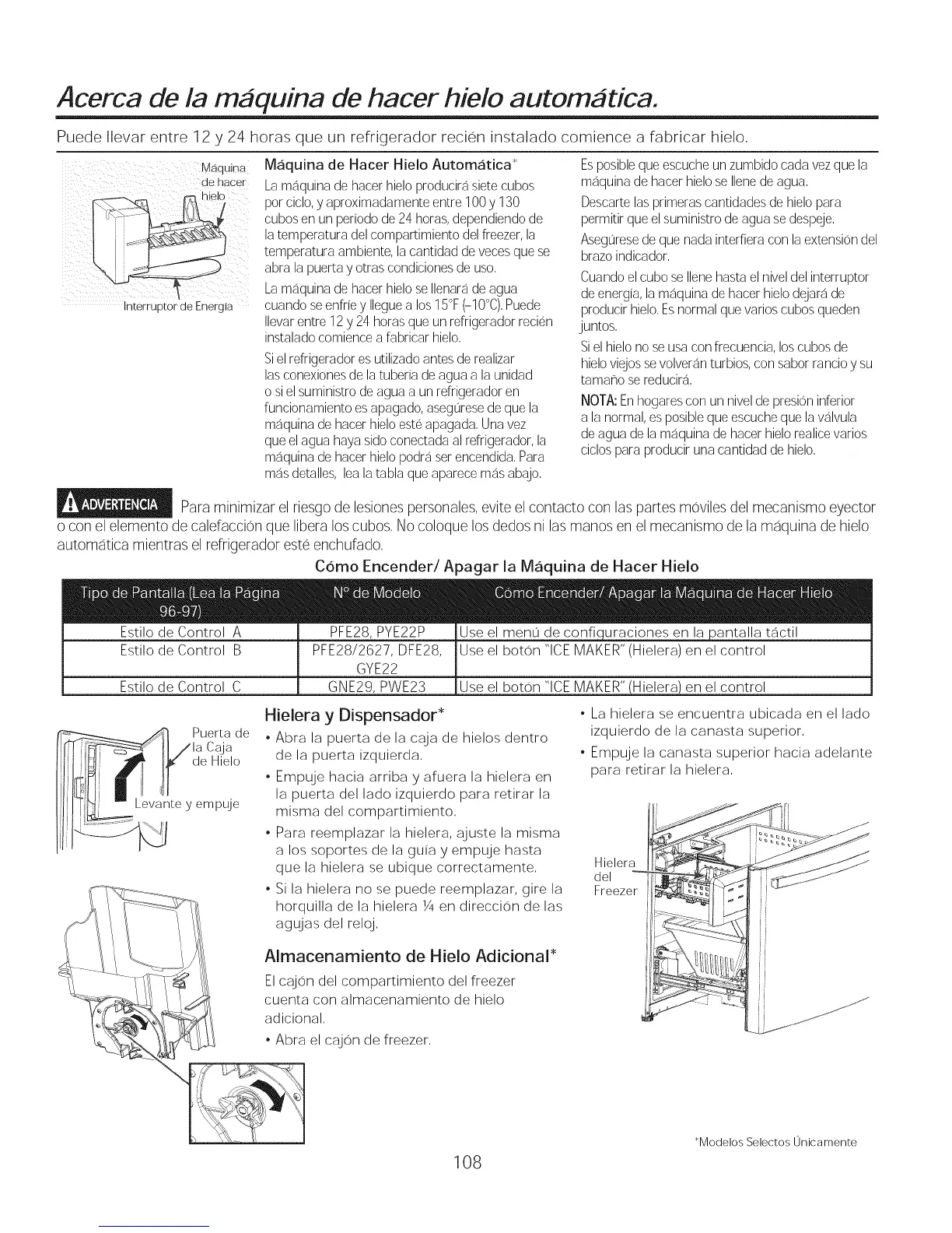 o con el elemento de calefaccion que libera los cubos, Nocoloque losdedos ni las manos en el mecanismo de la maquina de hielo