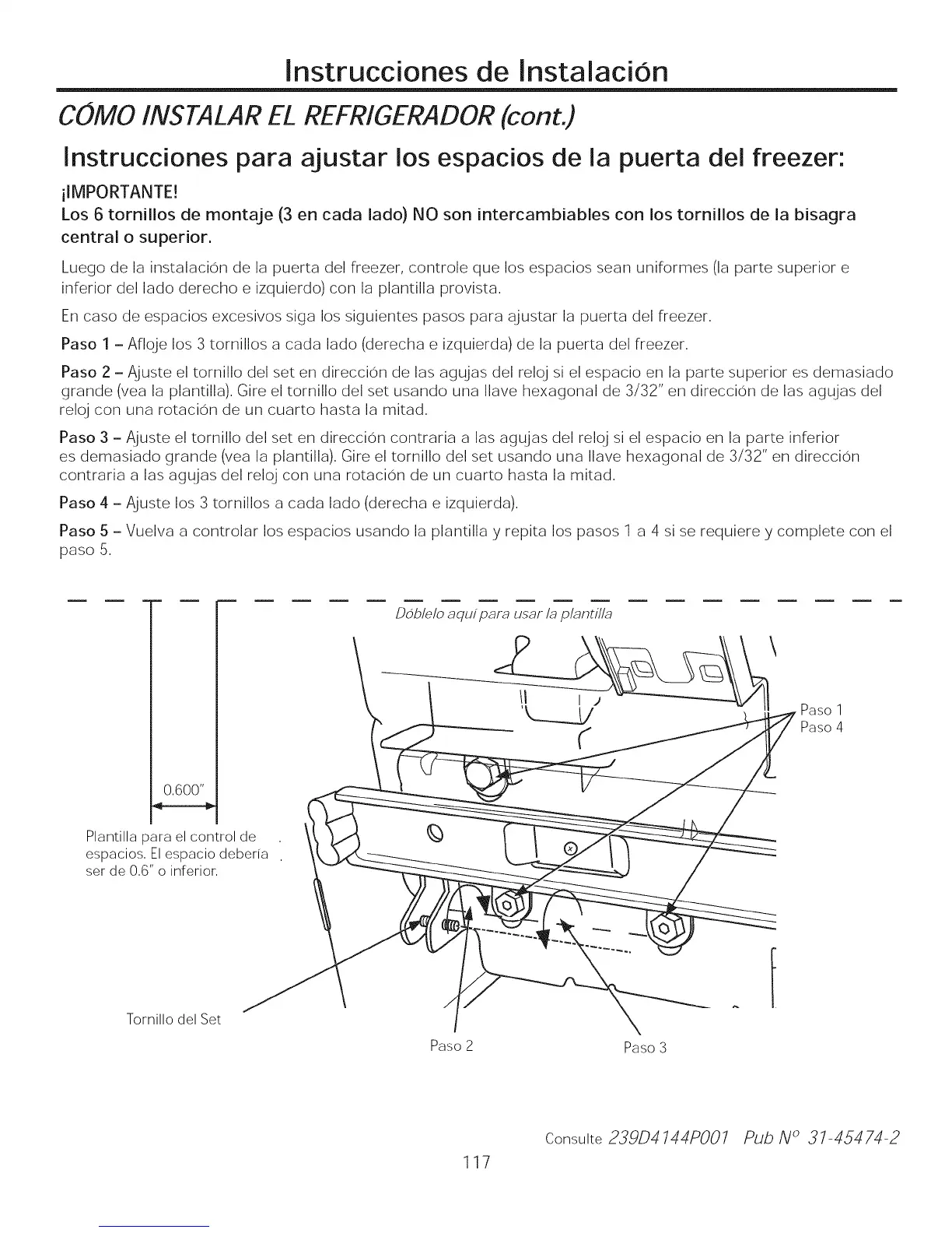 Los 6 tornillos de monta_e (3 en cada lado) NO son intercambiables con los tornillos de la bisagra