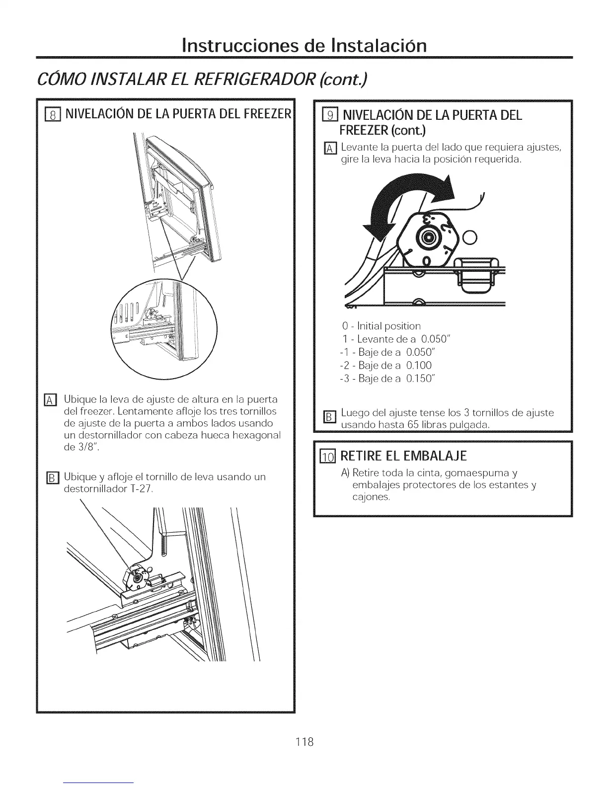 COMO INSTALAR EL REFRIGERADOR (cont.)