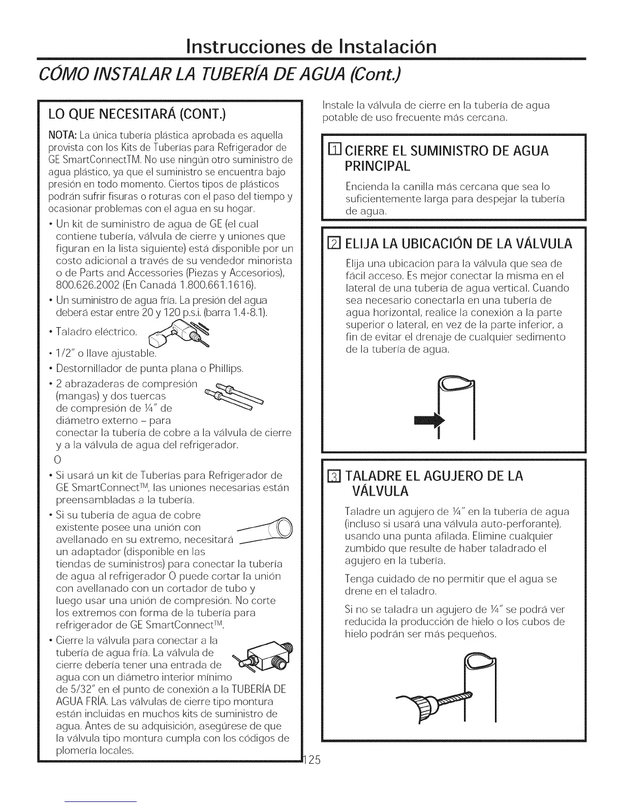 • Un kit de suministro de agua de GE (el cual