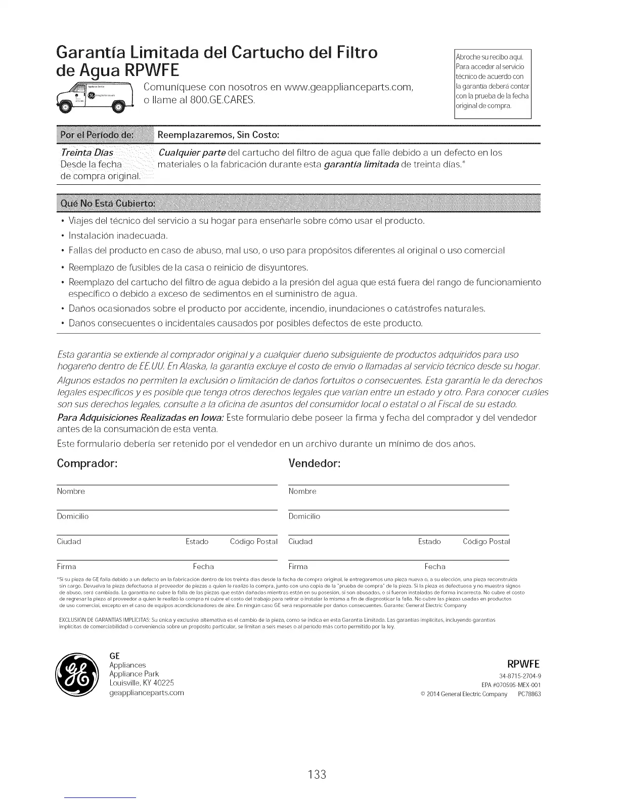 _Si su pieza de GE ttflla debido a tin detecto en la ttlbricacion dentro de los treinta alias desde la techa de compra original, le entregaremos una pieza nueva o, a su eleccion, una pieza reconstruida