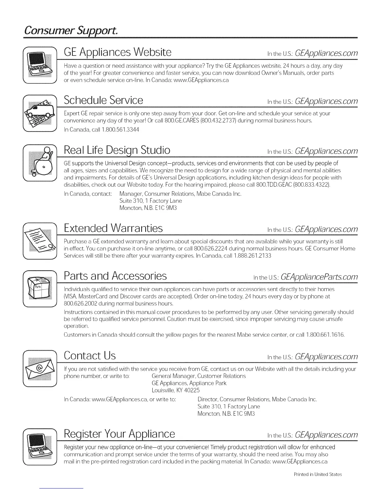 convenience any day of the year! Or call 800,GE,CARES(800,432,2737) during normal business hours,