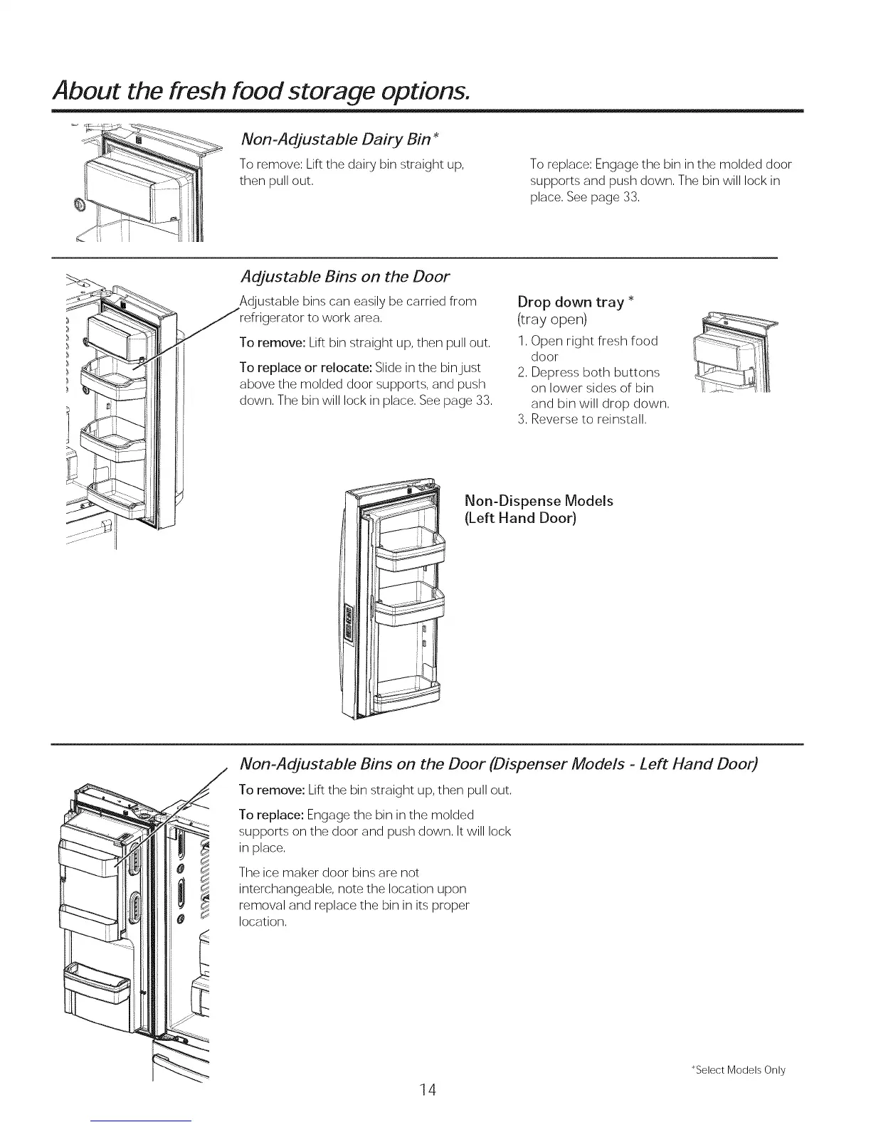 Non-AdJustable Bins on the Door (Dispenser Models - Left Hand Door)