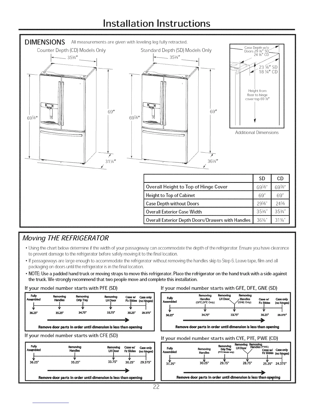 • Using the chart below determine ifthe width of your passageway can accommodate the depth of the refrigerator, Ensureyou have clearance